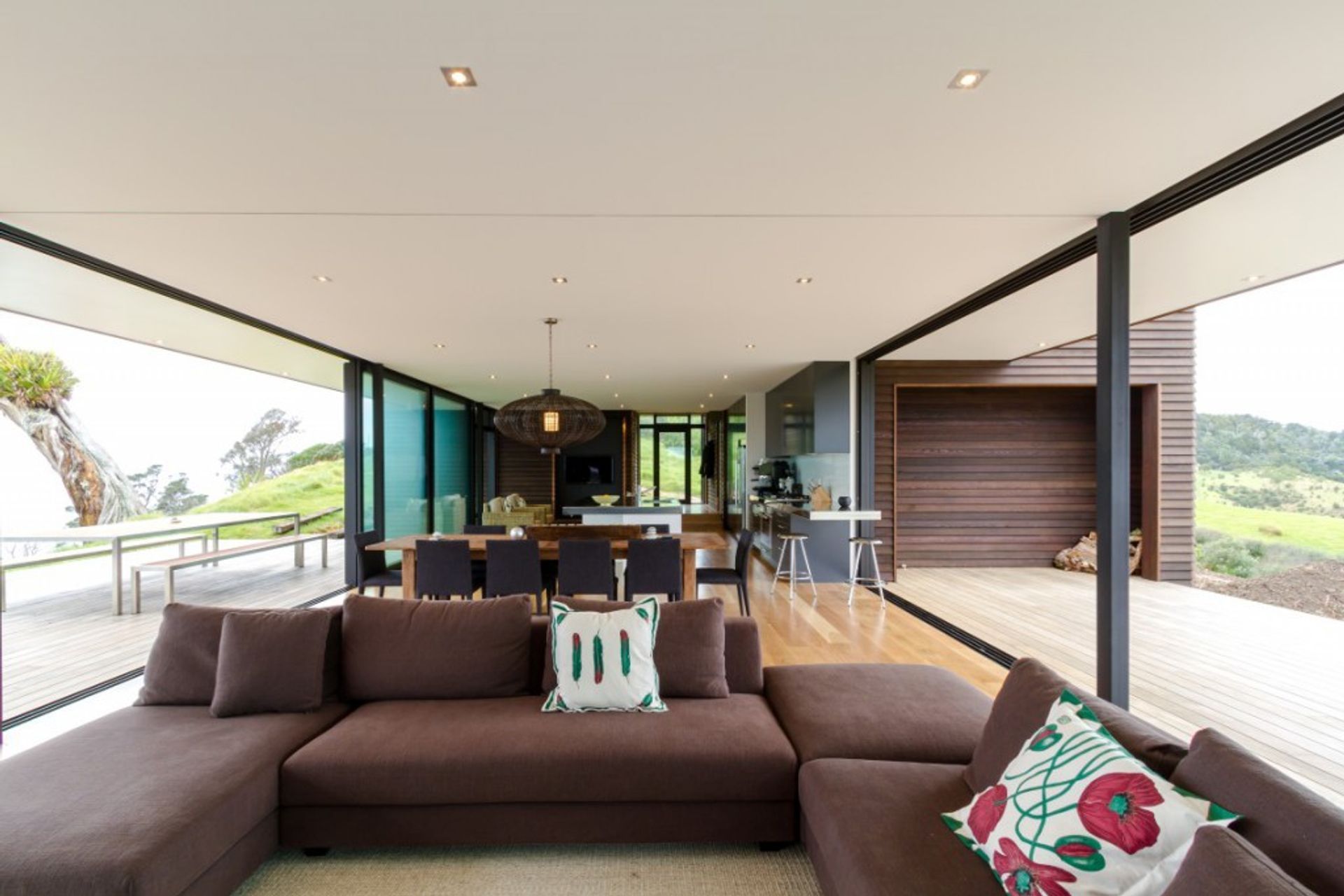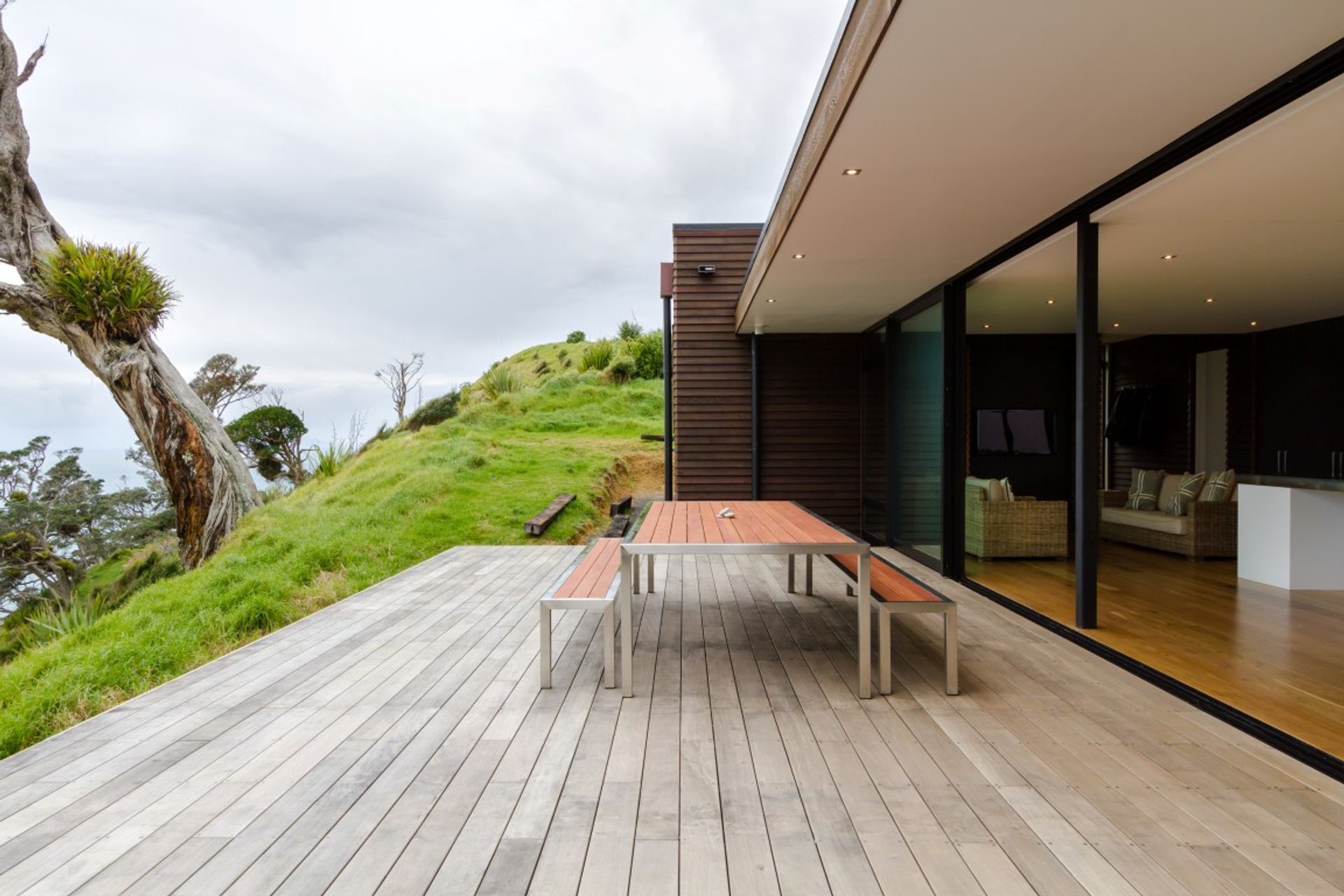 ArchiPro Project Summary - A breathtaking holiday house featuring 360-degree views, designed by Studio John Irving with natural materials, spacious living areas, and private master suites, complemented by expansive decks and a harmonious blend with the surrounding environment.