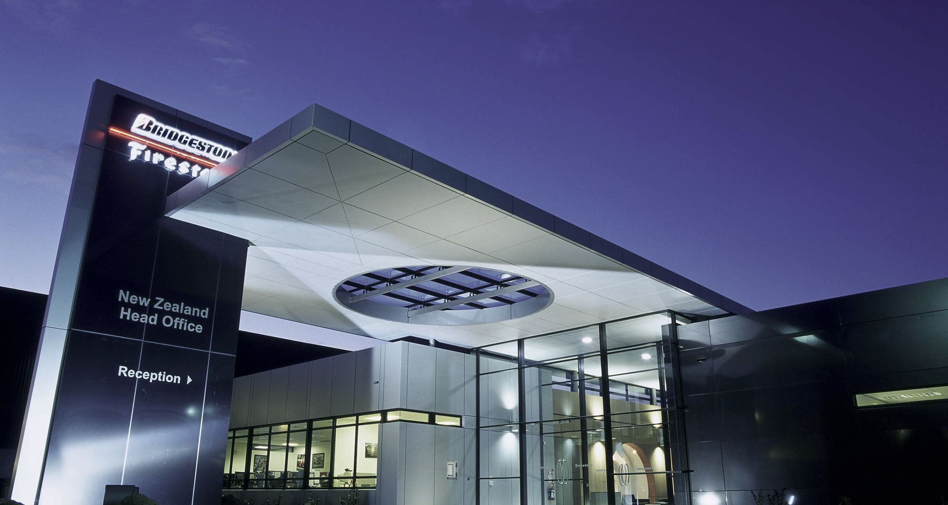 ArchiPro Project Summary - Bridgestone/Firestone integrates a state-of-the-art bulk distribution warehouse with NZHO office functions on a modern industrial site, completed in 2002.