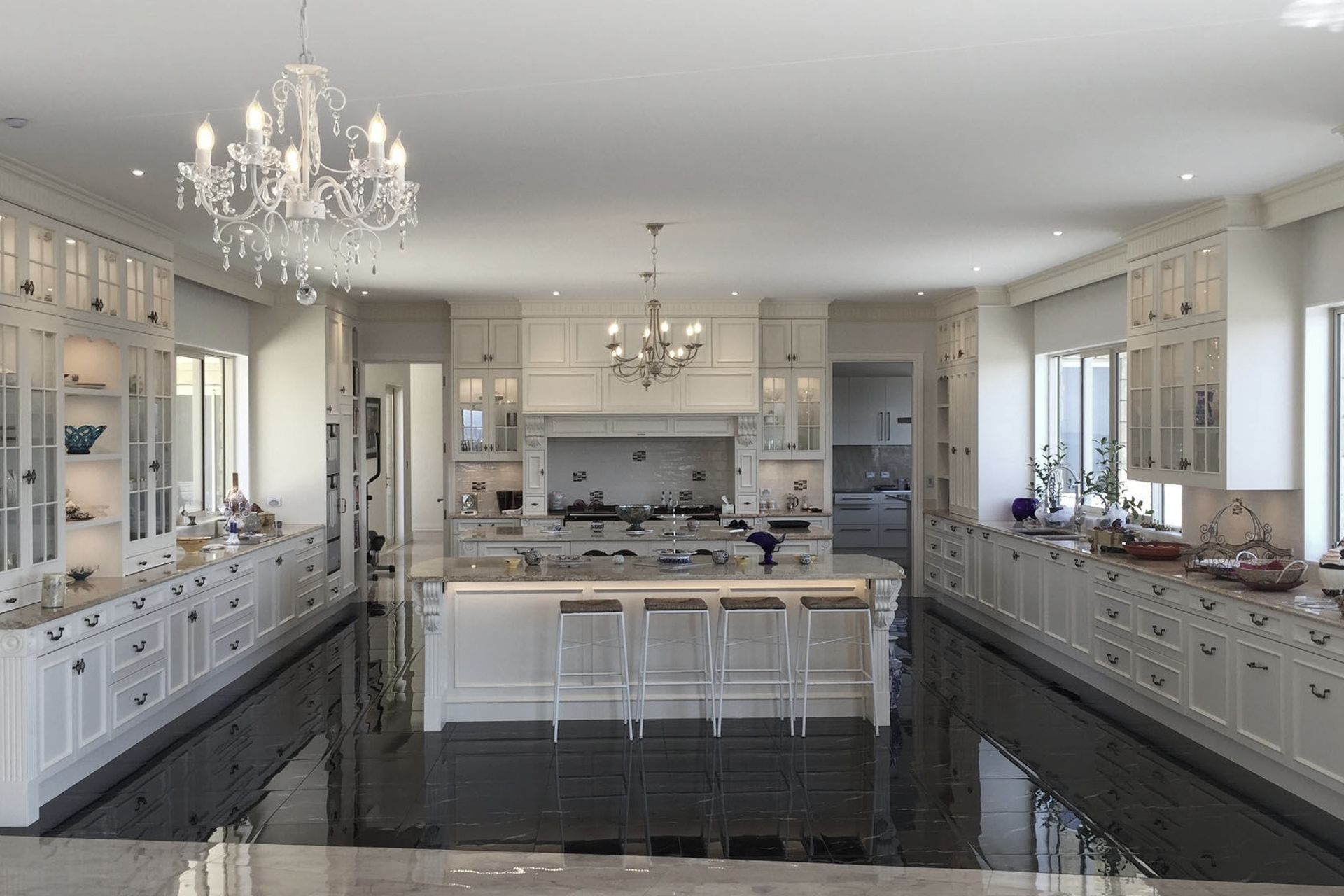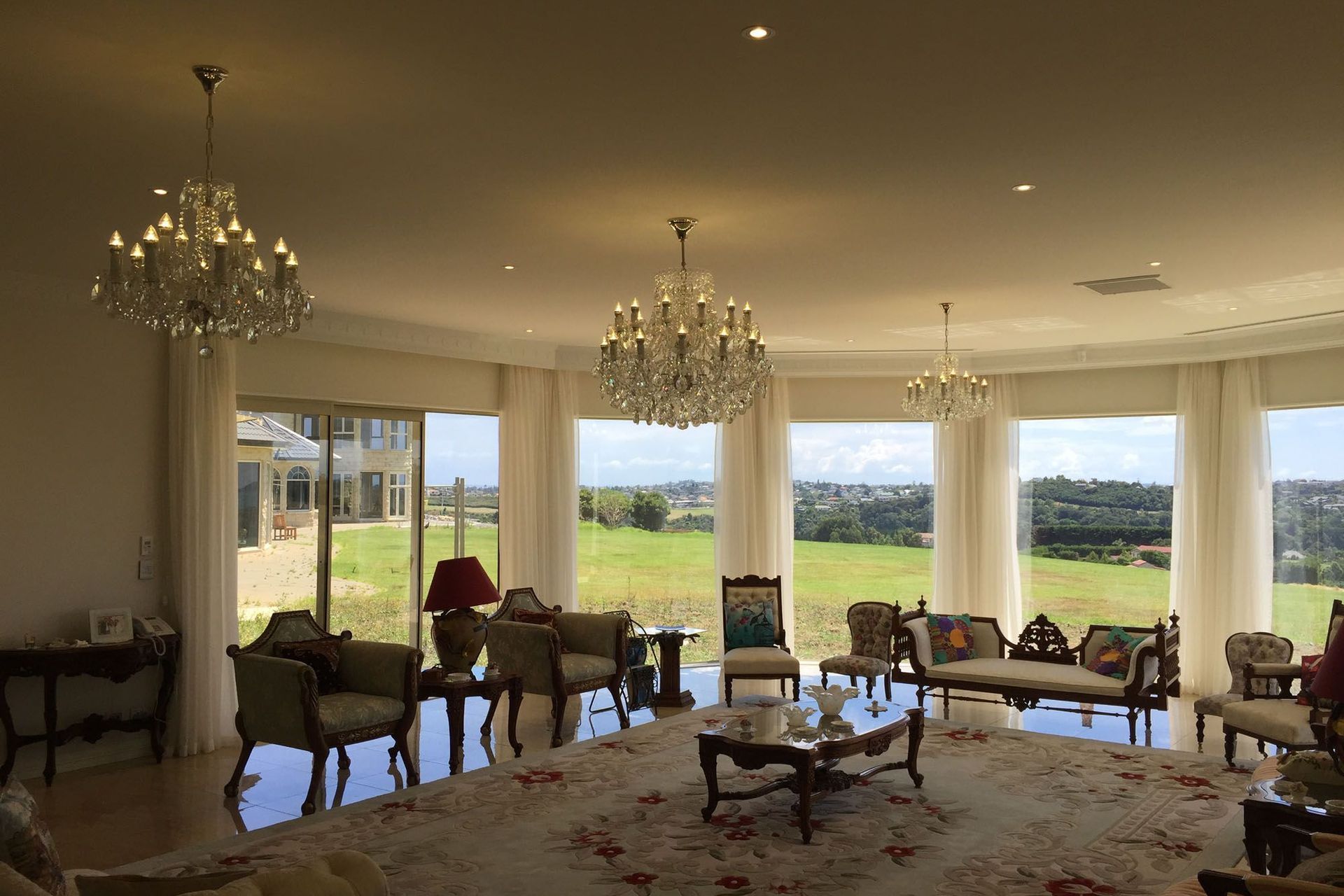 ArchiPro Project Summary - A fully automated luxury residence featuring advanced security, lighting, and climate control systems, complemented by 10 bedrooms, multiple living spaces, a chef's kitchen, and an 8-car garage.
