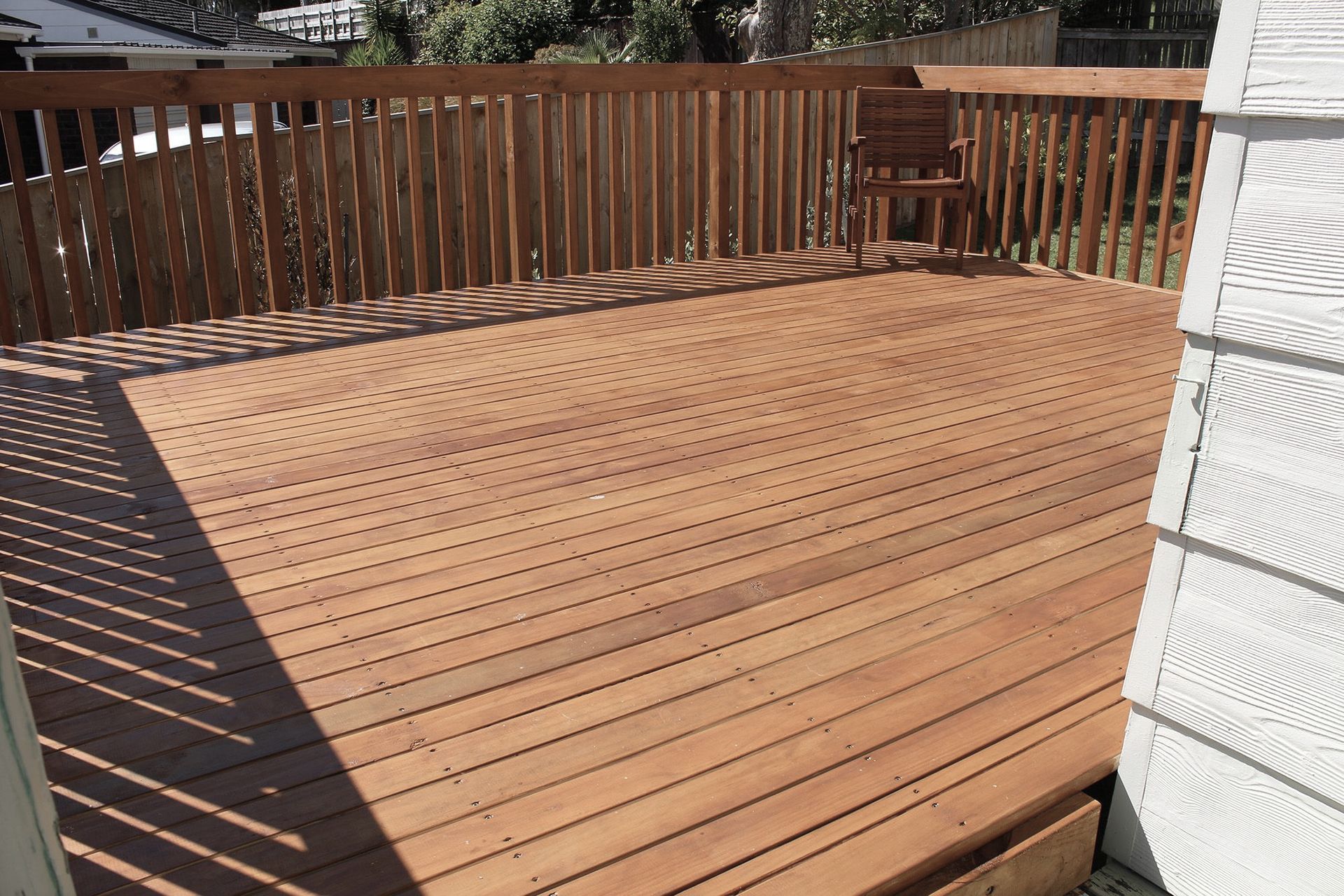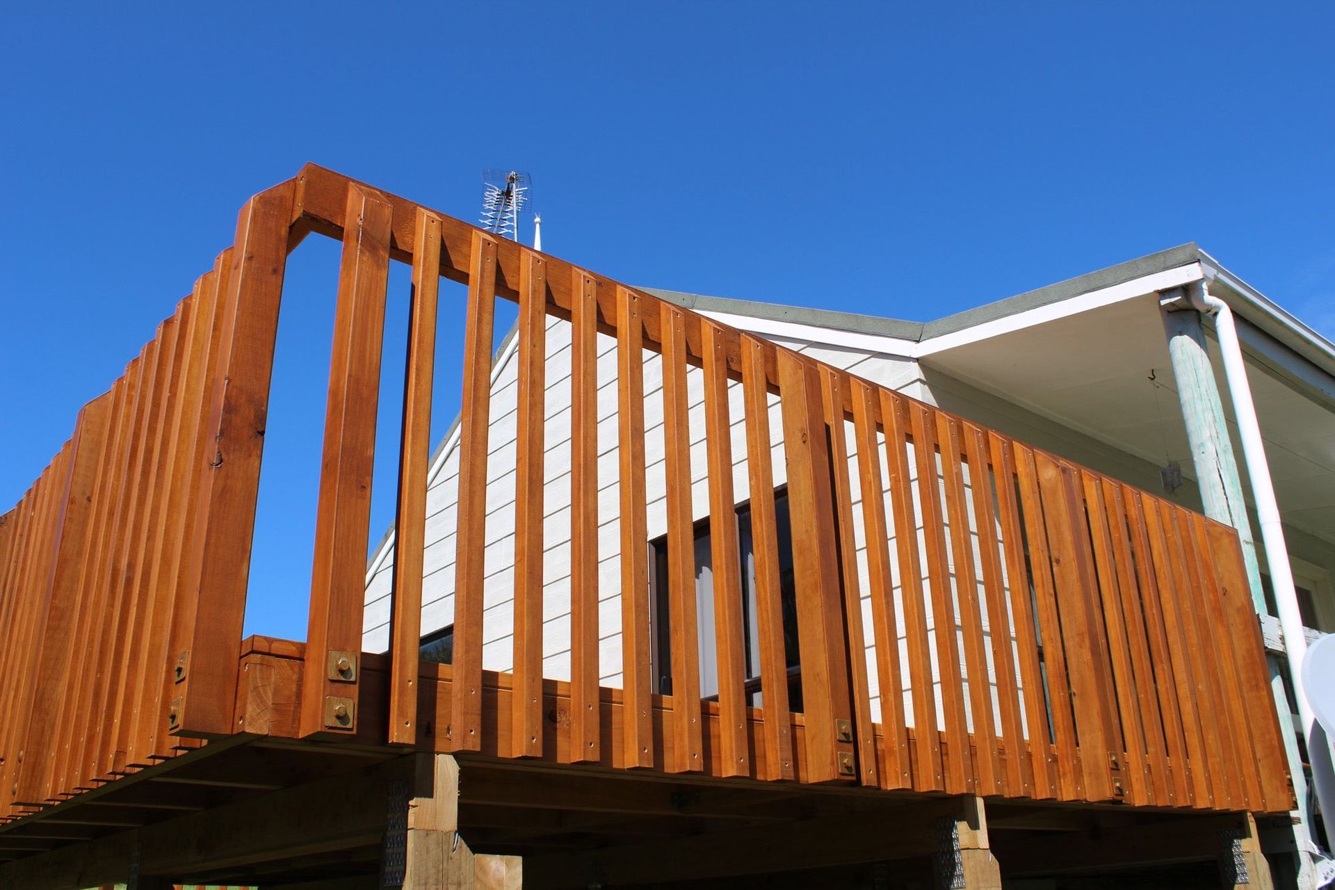 ArchiPro Project Summary - A large raised pine deck enhances outdoor living, seamlessly connecting an existing wrap-around deck to the garden.