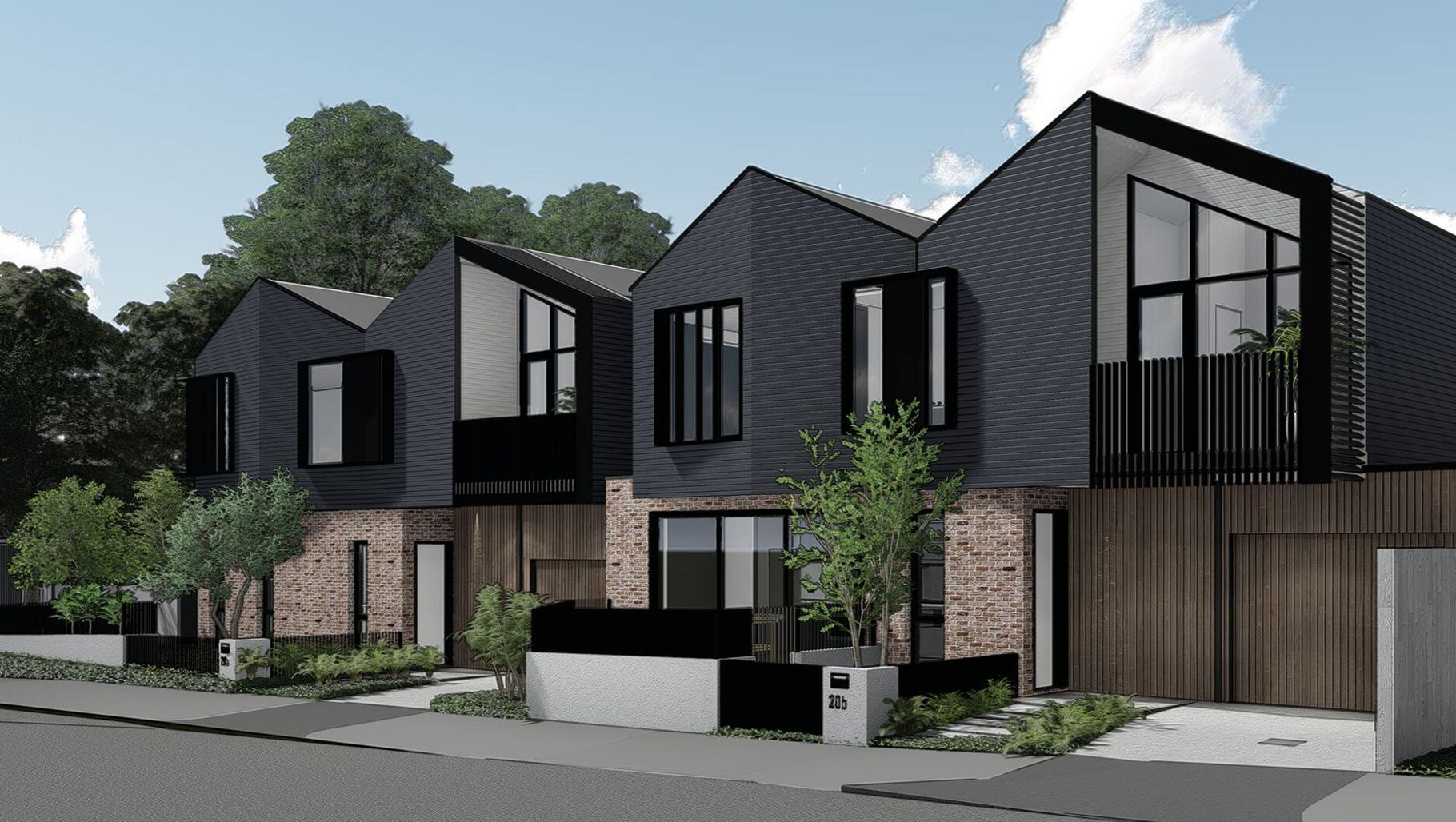 ArchiPro Project Summary - Contemporary Brunswick Townhouses featuring striking architecture and flexible living spaces on a compact 350m2 site.