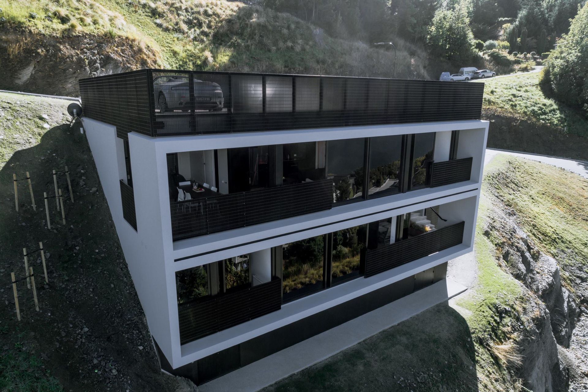 ArchiPro Project Summary - Bunker House, a stunning architectural marvel carved into the cliff face, offers breathtaking views over Queenstown's Lake Wakatipu, showcasing precision building and an ultra-modern aesthetic.