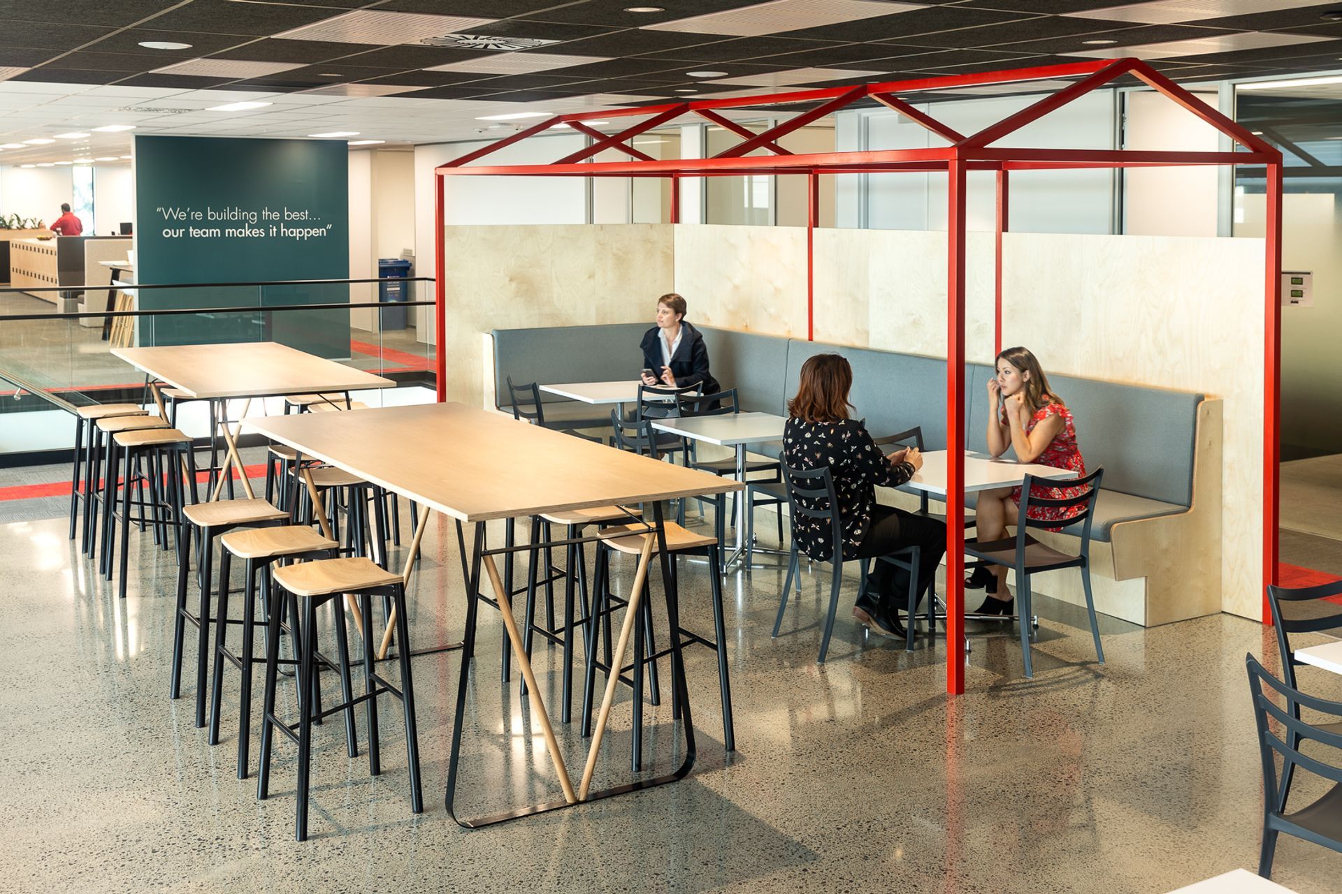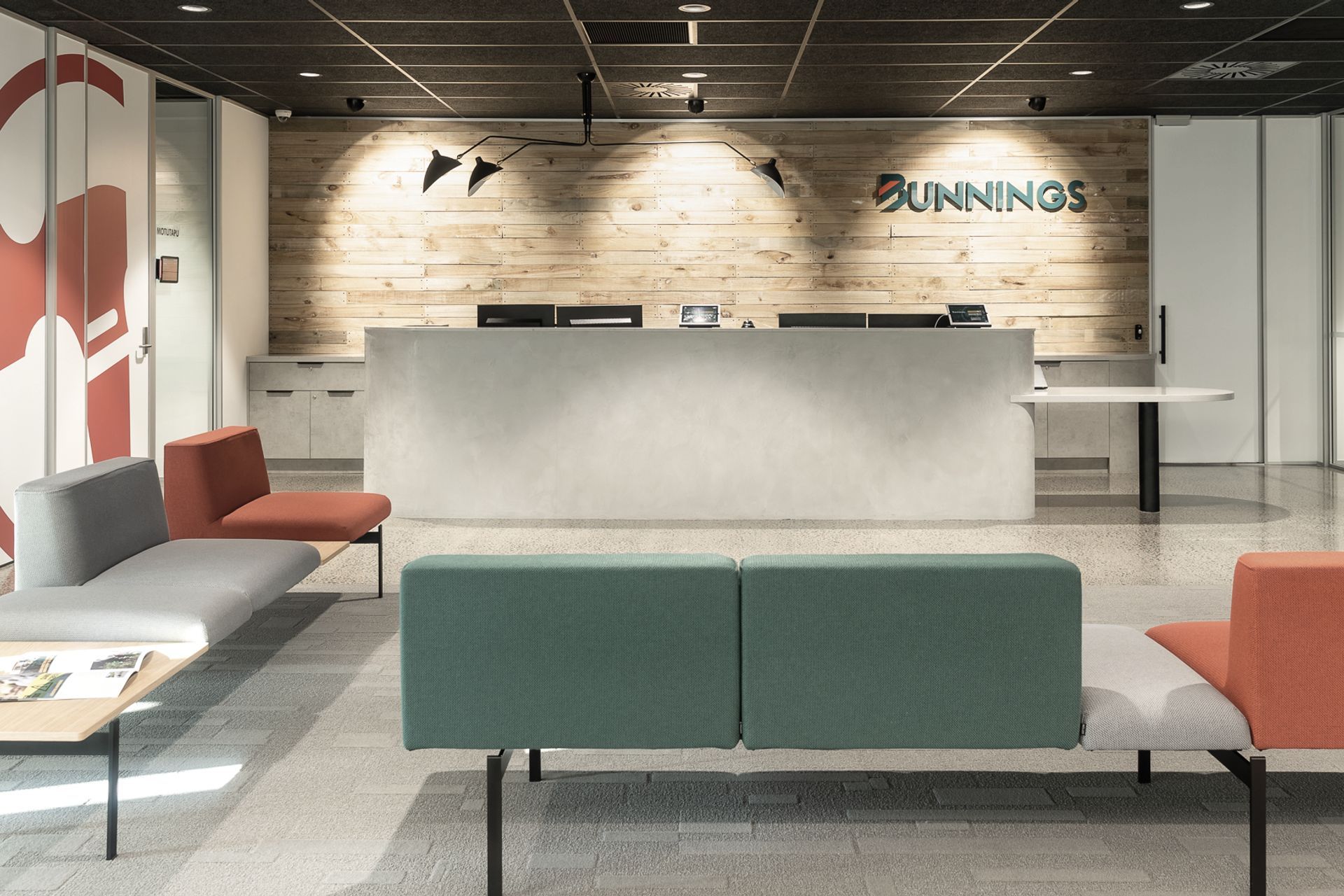ArchiPro Project Summary - A vibrant two-floor fitout for Bunnings, featuring flexible workspaces, collaborative areas, and a social hub that embodies the brand's welcoming culture through the use of familiar materials and colors.