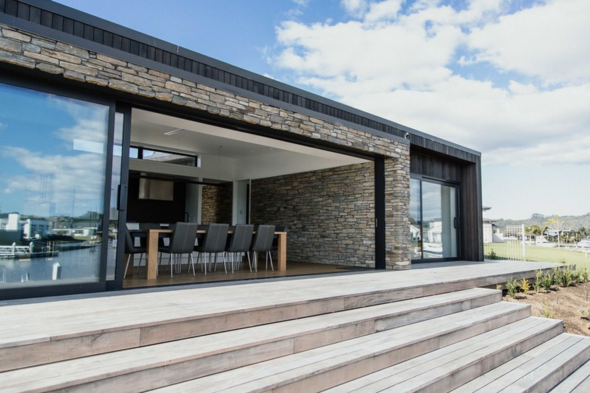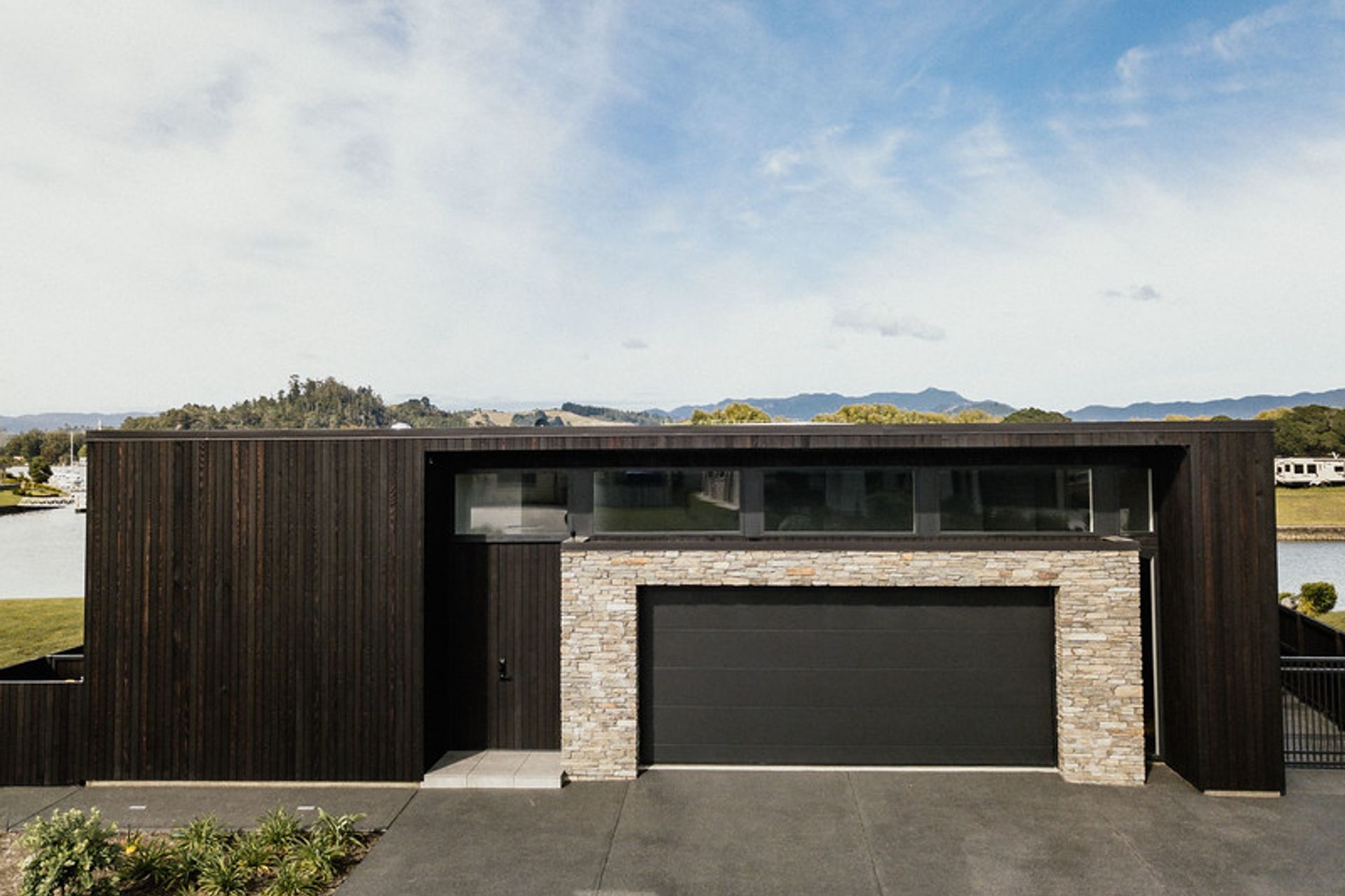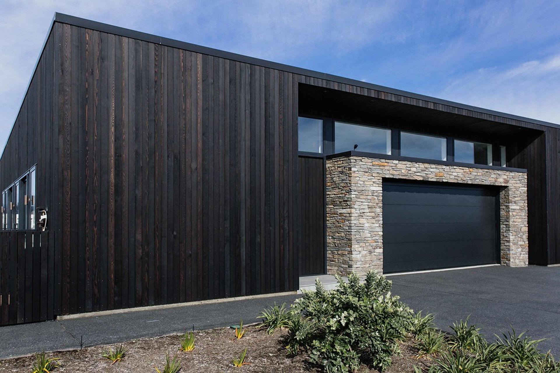 ArchiPro Project Summary - A unique home featuring contrasting materials and seamless integration of exterior and interior elements for a bespoke aesthetic.