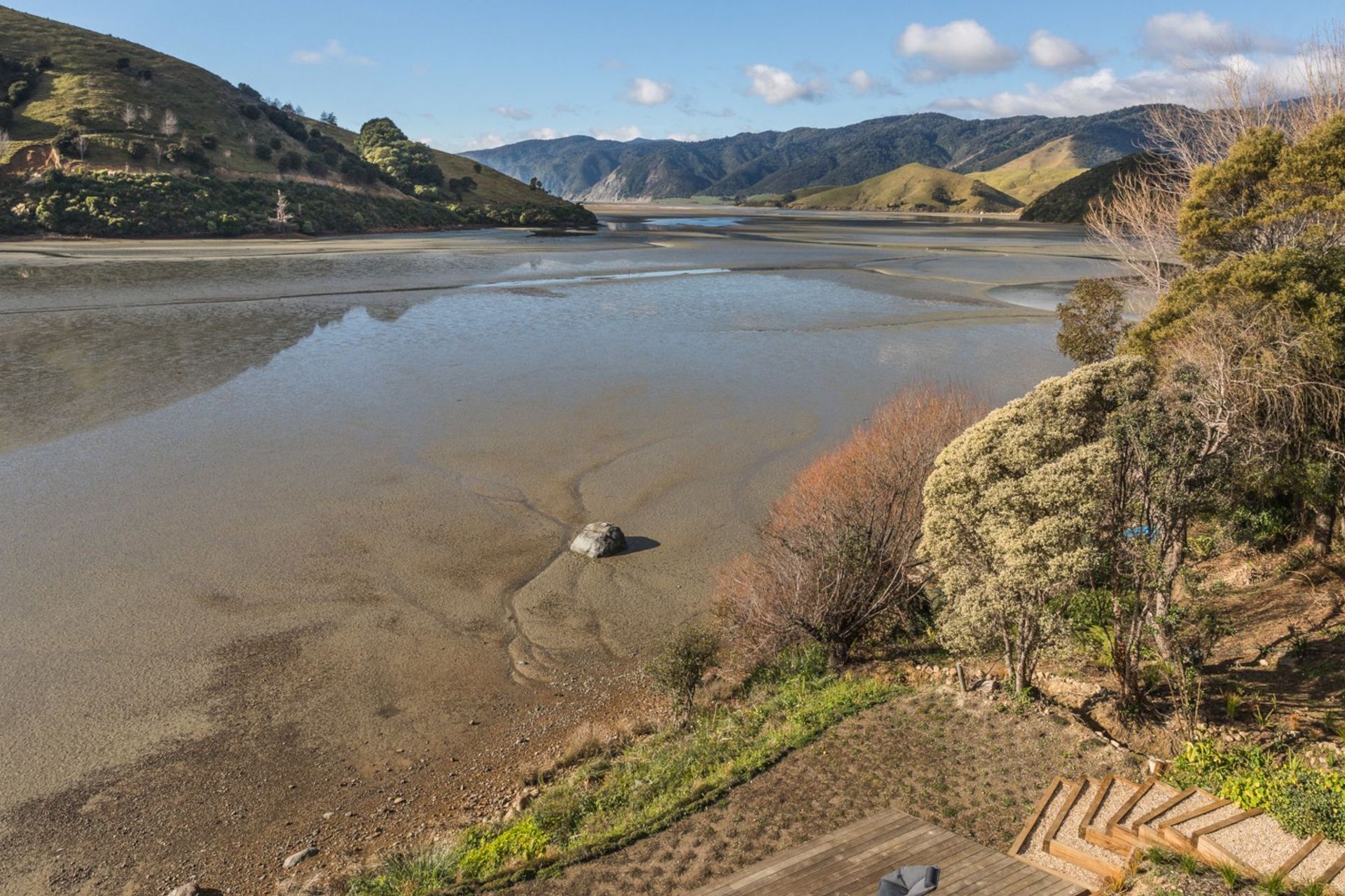 ArchiPro Project Summary - A serene outdoor retreat in Cable Bay featuring a stunning hardwood deck and solid macrocarpa steps, designed in collaboration with Design Base to enhance the natural beauty and tranquility of the surrounding landscape.