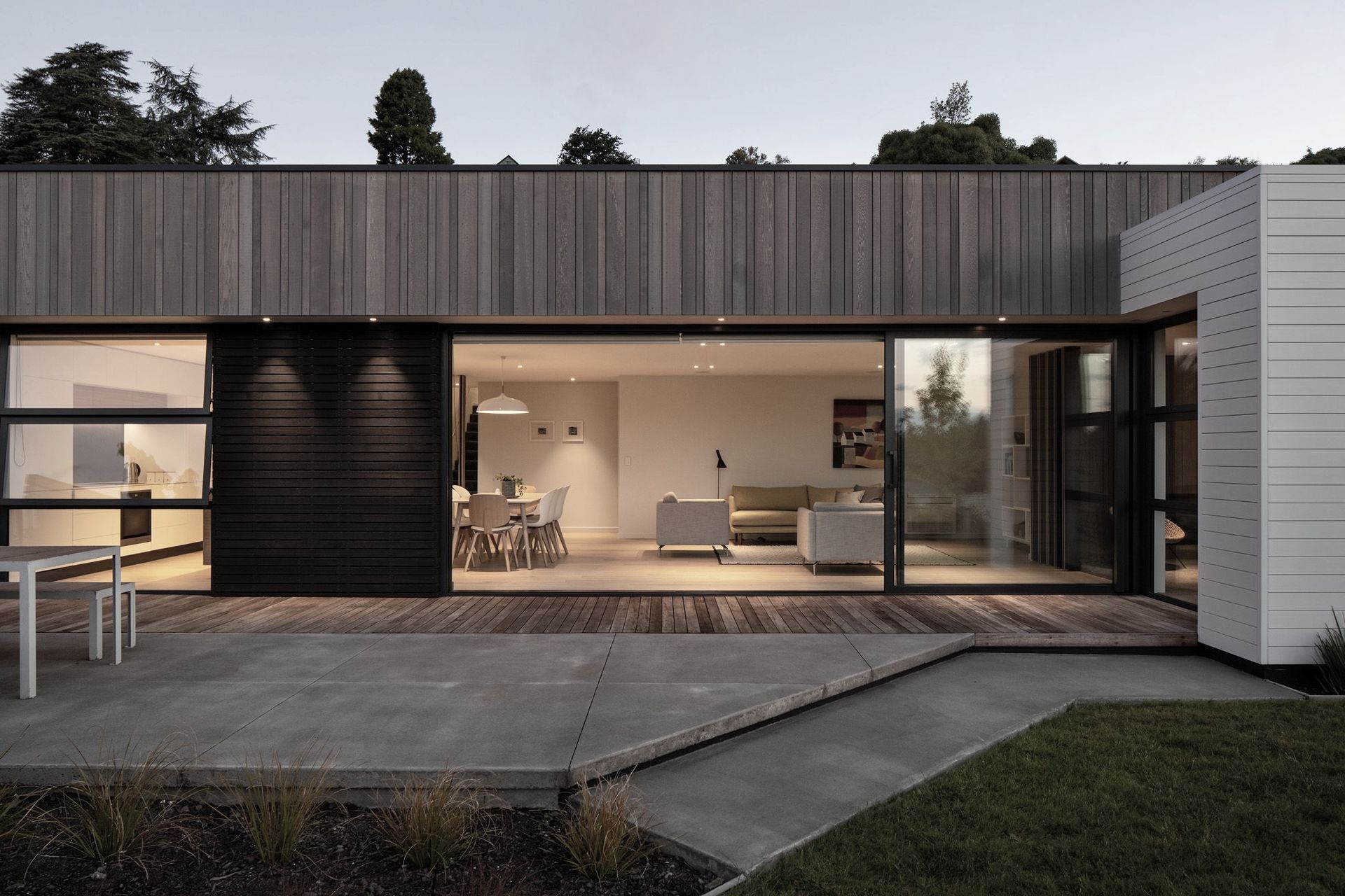 ArchiPro Project Summary - A thoughtfully designed family home on the Cashmere hills, featuring a harmonious blend of modern aesthetics and natural surroundings, with open-plan living, extensive glazing, and a seamless connection to the adjacent public reserve.