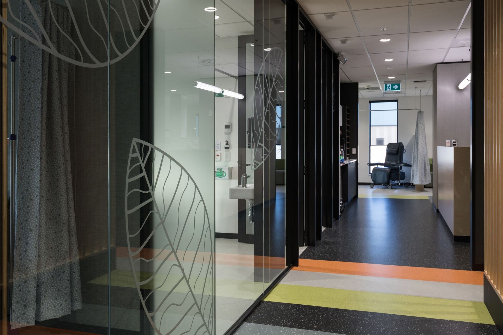 ArchiPro Project Summary - Design and fitout of Canopy Cancer Care's Takapuna branch, blending contemporary fixtures with a homely character to create a comforting environment, featuring medical and surgical rooms, family areas, and vibrant design elements.