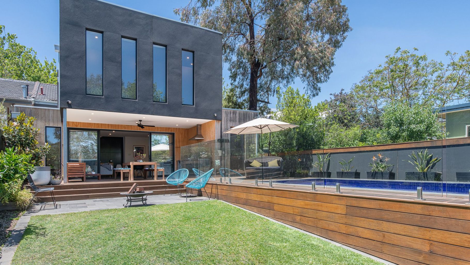 ArchiPro Project Summary - A thoughtfully renovated duplex in Canterbury, featuring an integrated living space that enhances flow and connectivity, complemented by a raised pool and expansive decking, all designed to maximize the potential of a compact, sloping site.