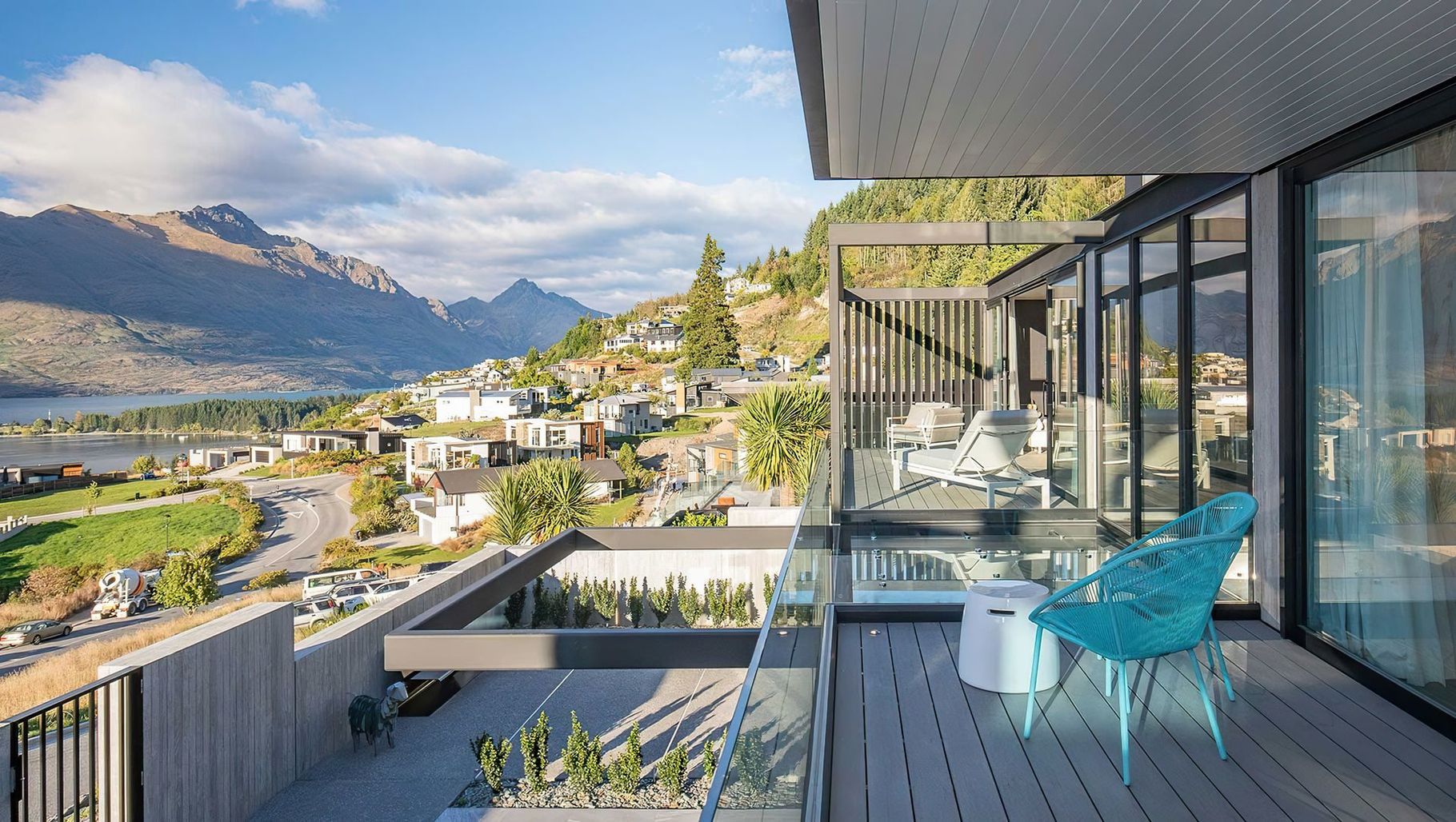 ArchiPro Project Summary - Cascata Apartments features a biophilic design with extensive glazing, maximizing views of Queenstown while ensuring thermal efficiency through advanced window systems and sustainable heating solutions.