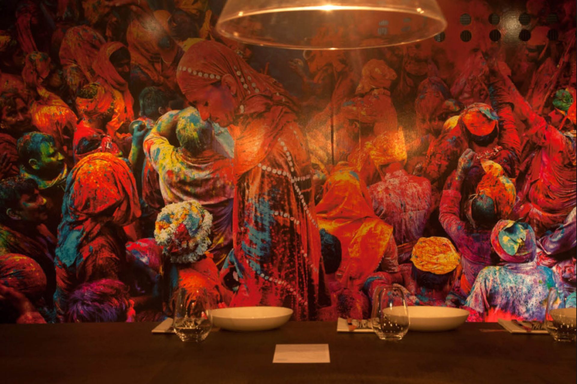 ArchiPro Project Summary - Cassia: An award-winning Indian fusion street food restaurant featuring a vibrant atmosphere with striking wall graphics, an open kitchen with tandoor ovens, and a mix of communal and intimate dining spaces, located in the heart of Fort Lane, Auckland.