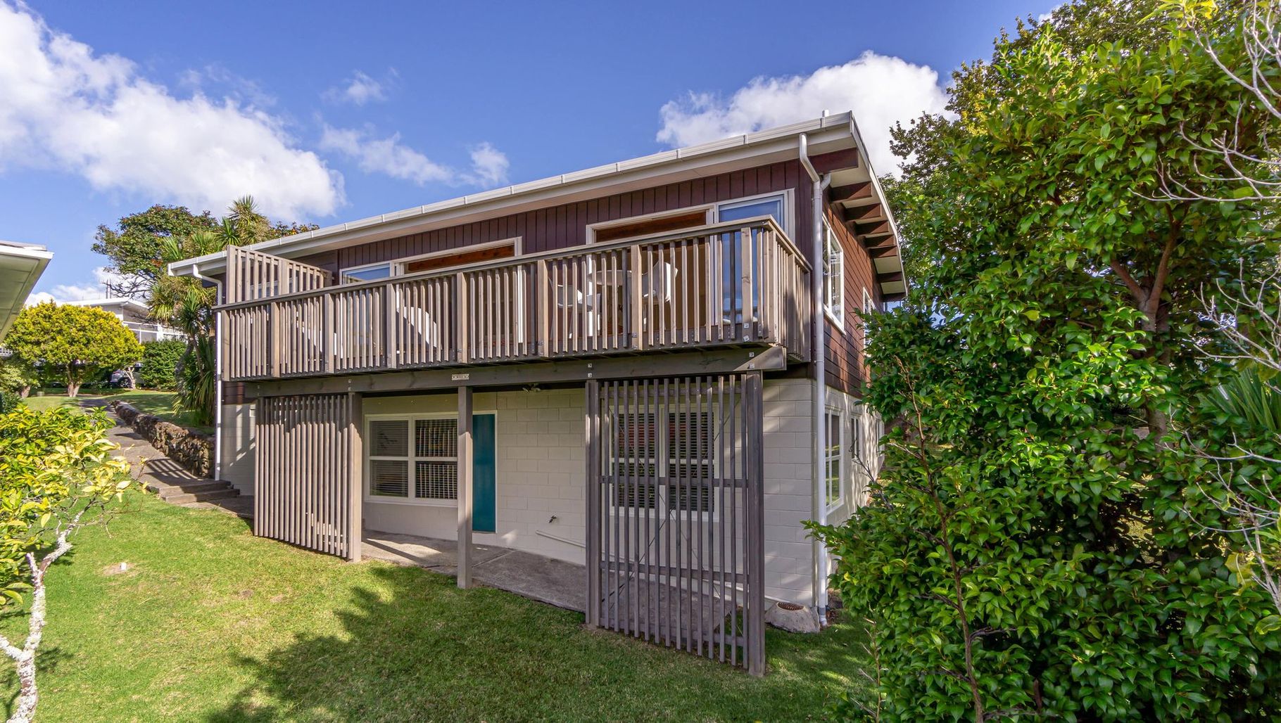 ArchiPro Project Summary - Comprehensive mid-1960s renovation in Auckland featuring updated interiors, modern bathrooms, a contemporary kitchen, and exterior enhancements including a new roof, rafters, handrails, decks, and a carport.