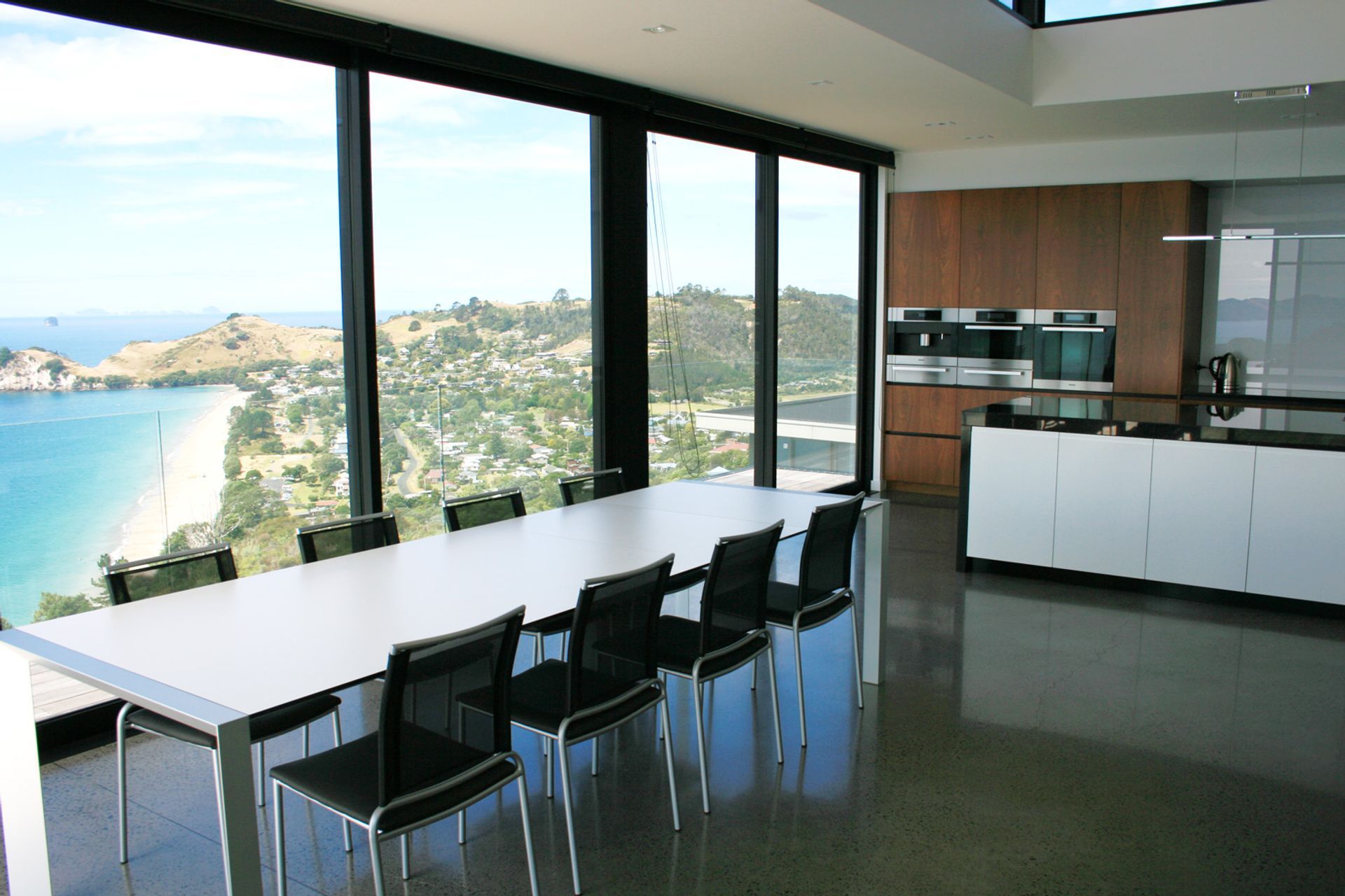 ArchiPro Project Summary - A stunning beach house at Cathedral Cove, featuring commanding views of Hahei beach and the Coromandel coastline, designed with protective walls against prevailing winds and a cantilevered timber structure that creates a unique floating sensation.