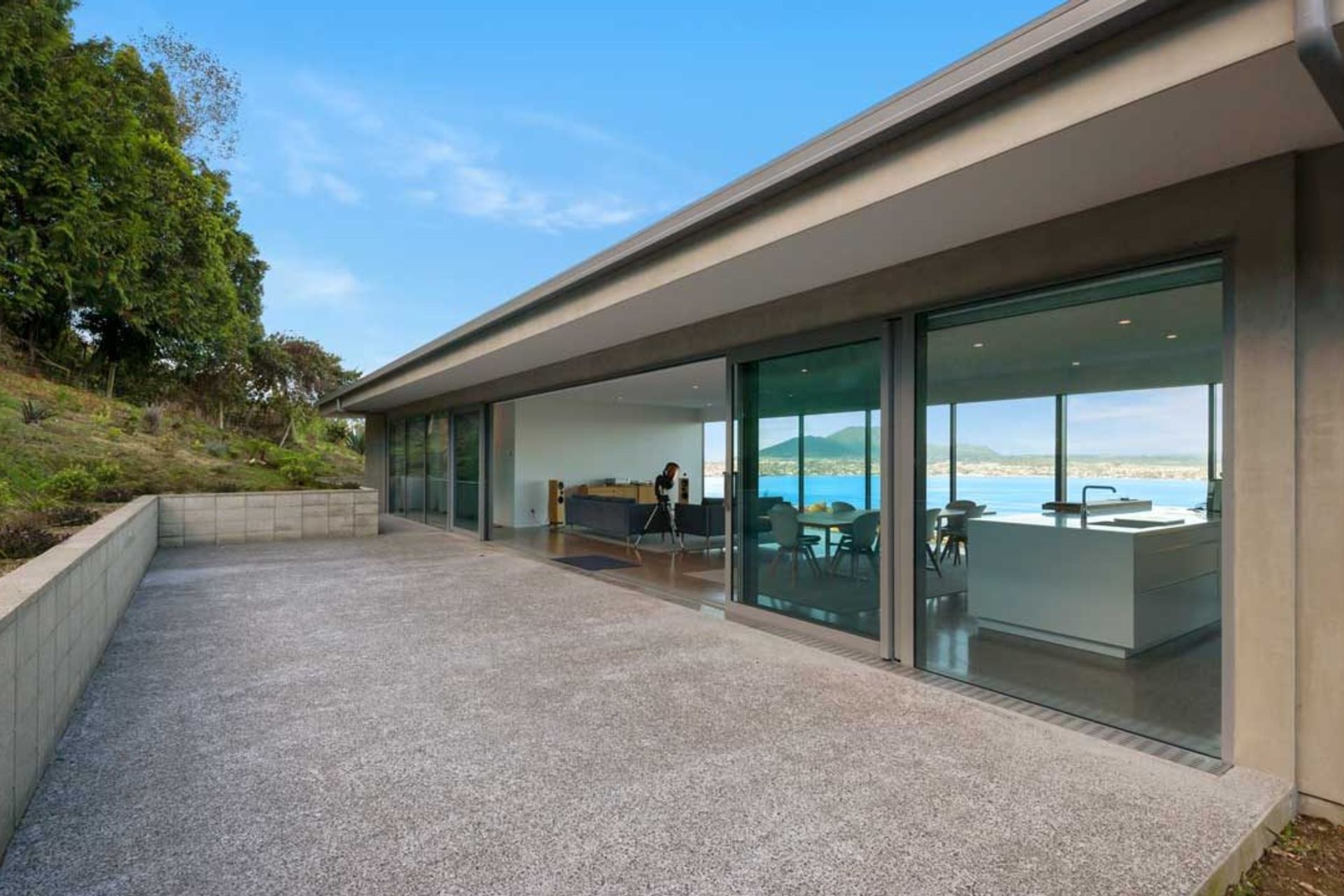 ArchiPro Project Summary - A stunning 300sqm residence featuring 85% glass, concrete, and steel, skillfully built by Beck Building on a challenging sloping site, offering breathtaking views while maintaining a harmonious balance with its natural surroundings.