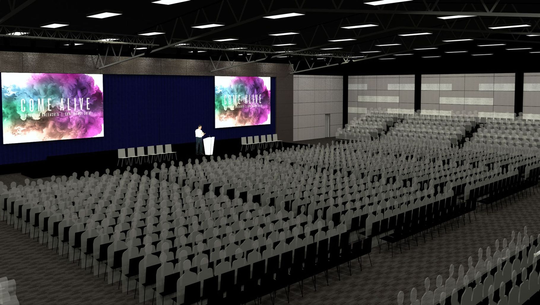 ArchiPro Project Summary - Repurposed manufacturing and warehouse buildings transformed into a multifunctional facility featuring a 2000-seat auditorium, indoor netted courts, a running track, and dedicated office and conference spaces.
