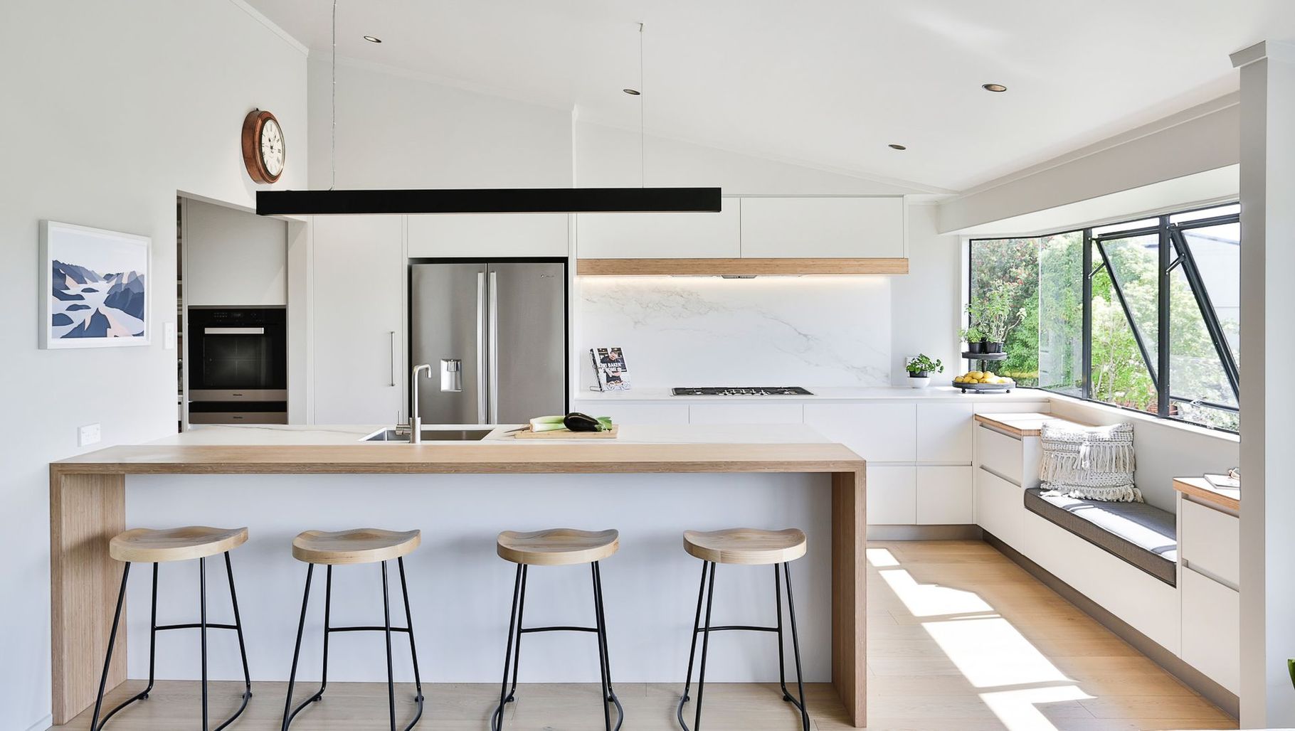 ArchiPro Project Summary - A transformative kitchen renovation for the Williams family, featuring a bamboo breakfast bar, a sunlit window seat, and a functional scullery, designed by Kitchens By Design to enhance family living and cooking experiences.