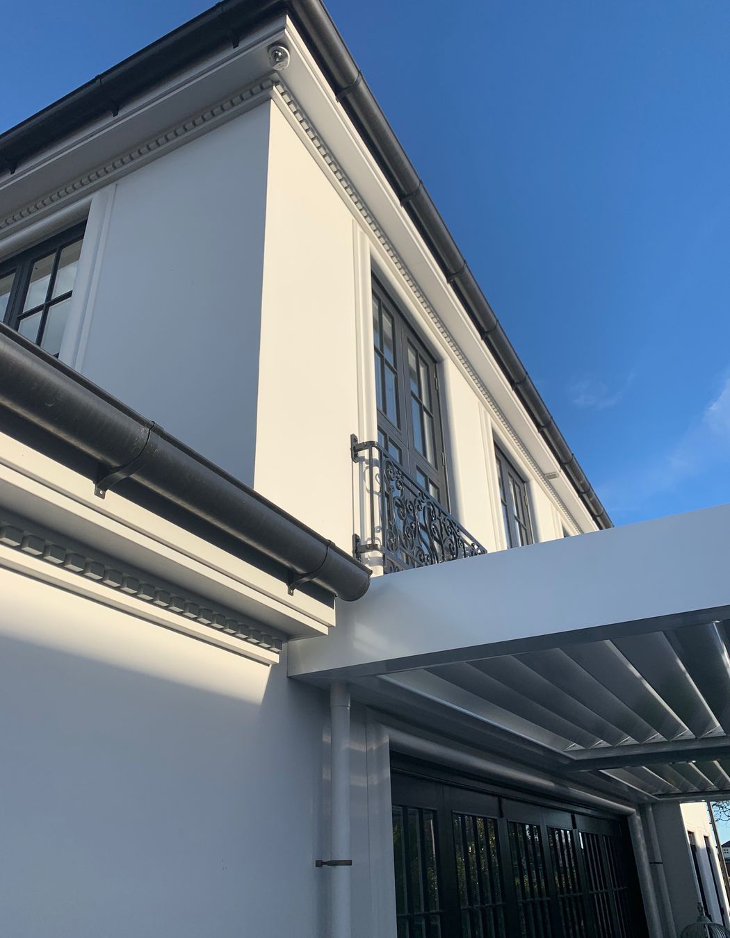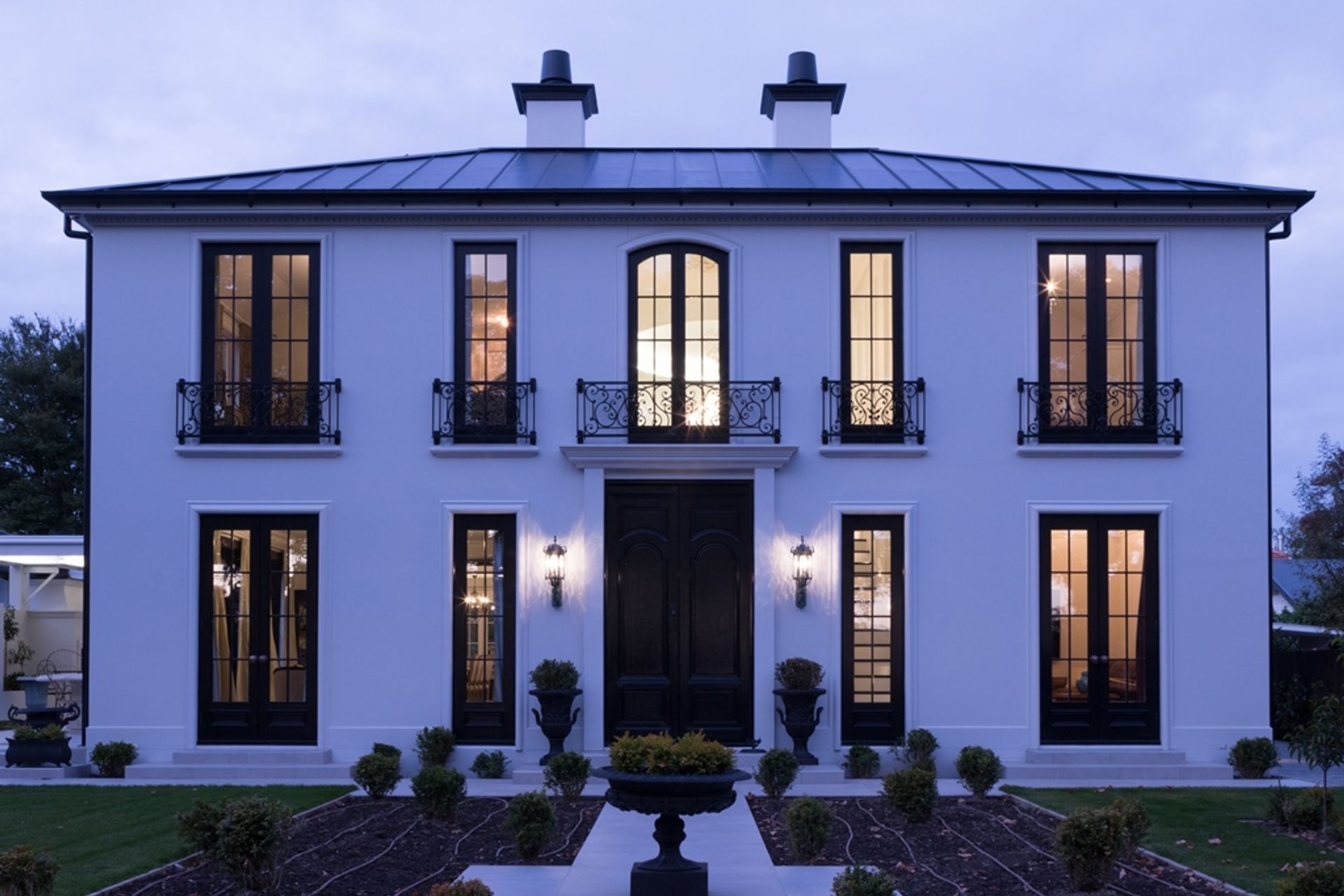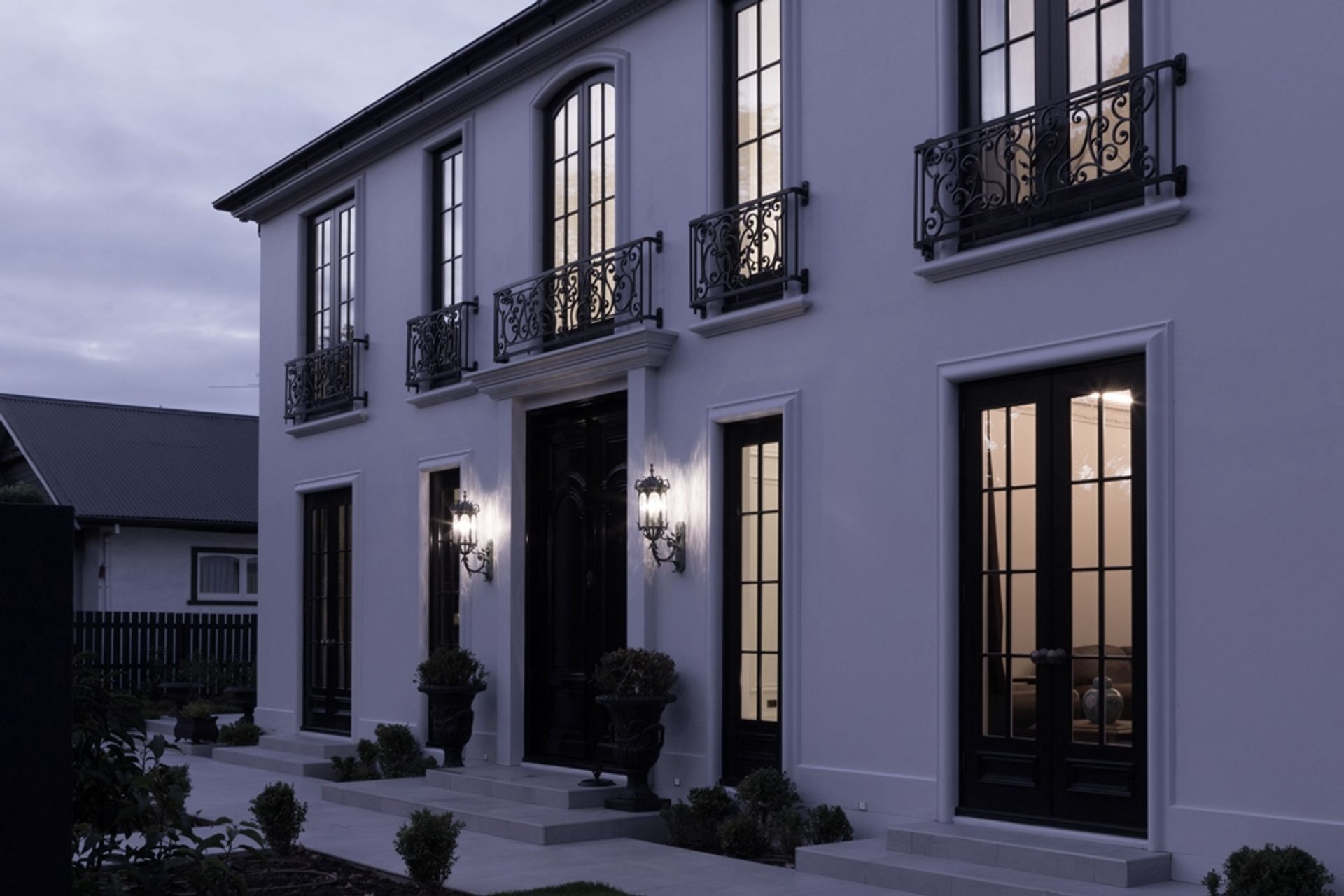ArchiPro Project Summary - Exquisite decorative details and elegant mouldings enhance the exterior of this luxury home in Christchurch, featuring custom architraves, sills, cornices, and soffit mouldings crafted by Accumen in DecraShape with a smooth plaster finish.
