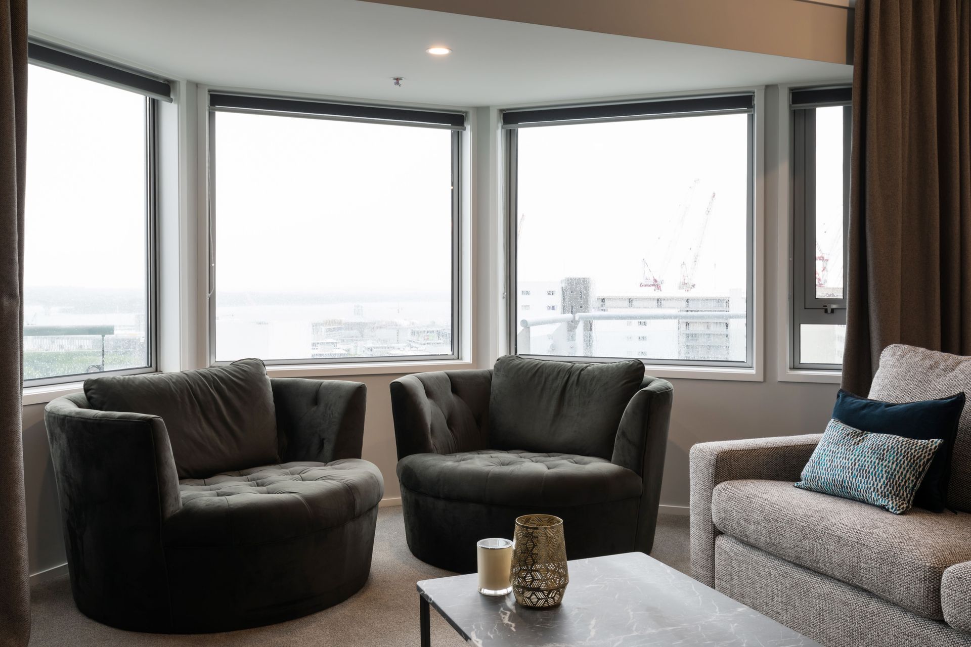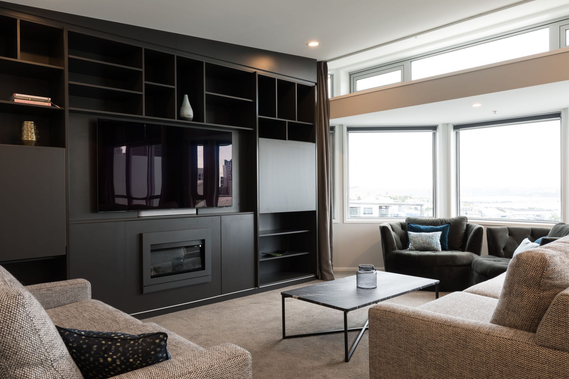 ArchiPro Project Summary - A contemporary three-bedroom apartment renovation completed in 2018, featuring stunning top-floor views, two new bathrooms, a modern kitchen, and refreshed flooring and furnishings for a revitalized living space.
