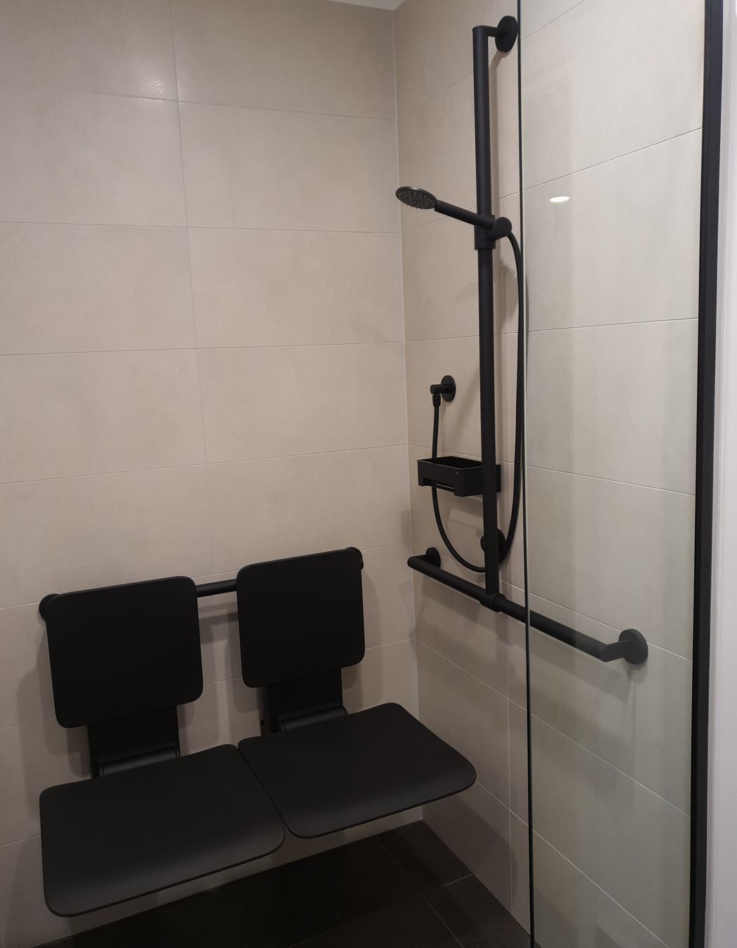 ArchiPro Project Summary - Complete makeover of accessible suites at CityLife Hotel (Auckland) featuring Hewi's System 900 in matt black for a contemporary aesthetic, designed in collaboration with Hallion Architects, Nala Studio Architects, and FURNZ.