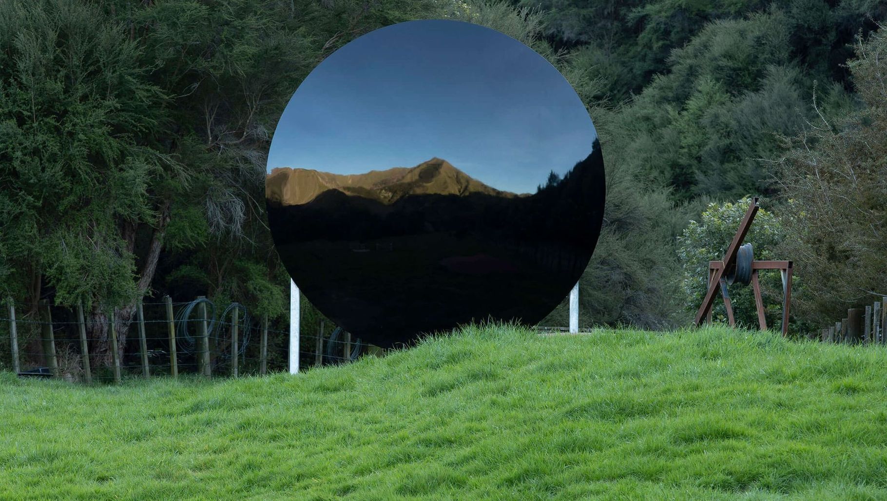 ArchiPro Project Summary - Claude Reflected is an architectural-scale sculpture that transforms the concept of the Claude glass, reflecting and distorting the New Zealand landscape while exploring the interplay of light and space in a unique experiential installation.