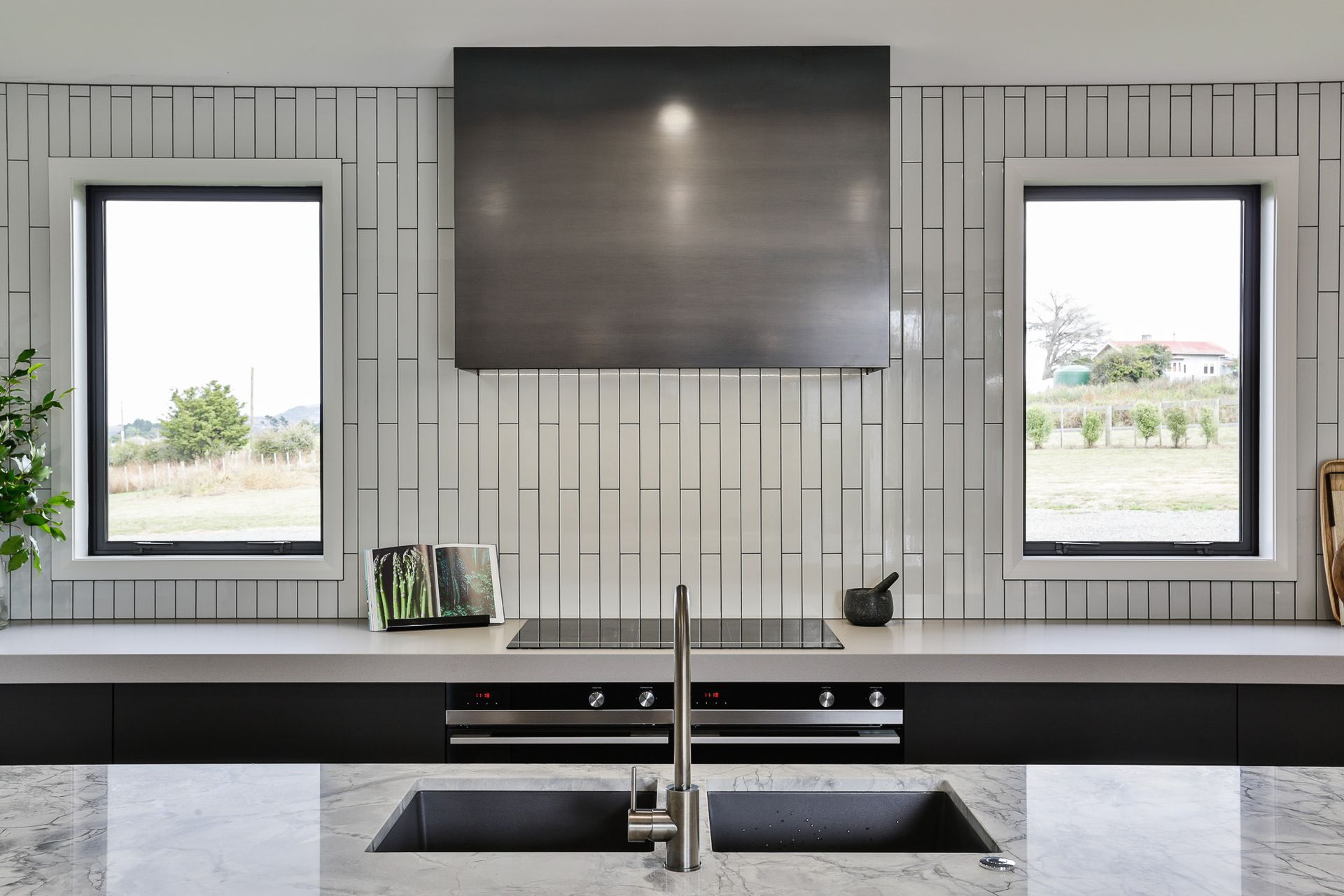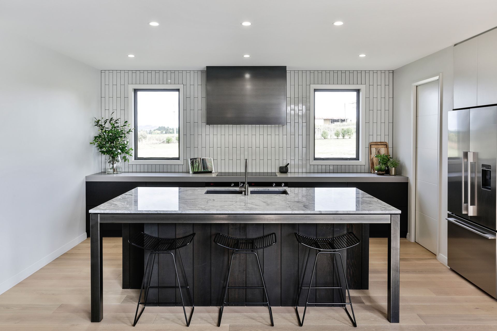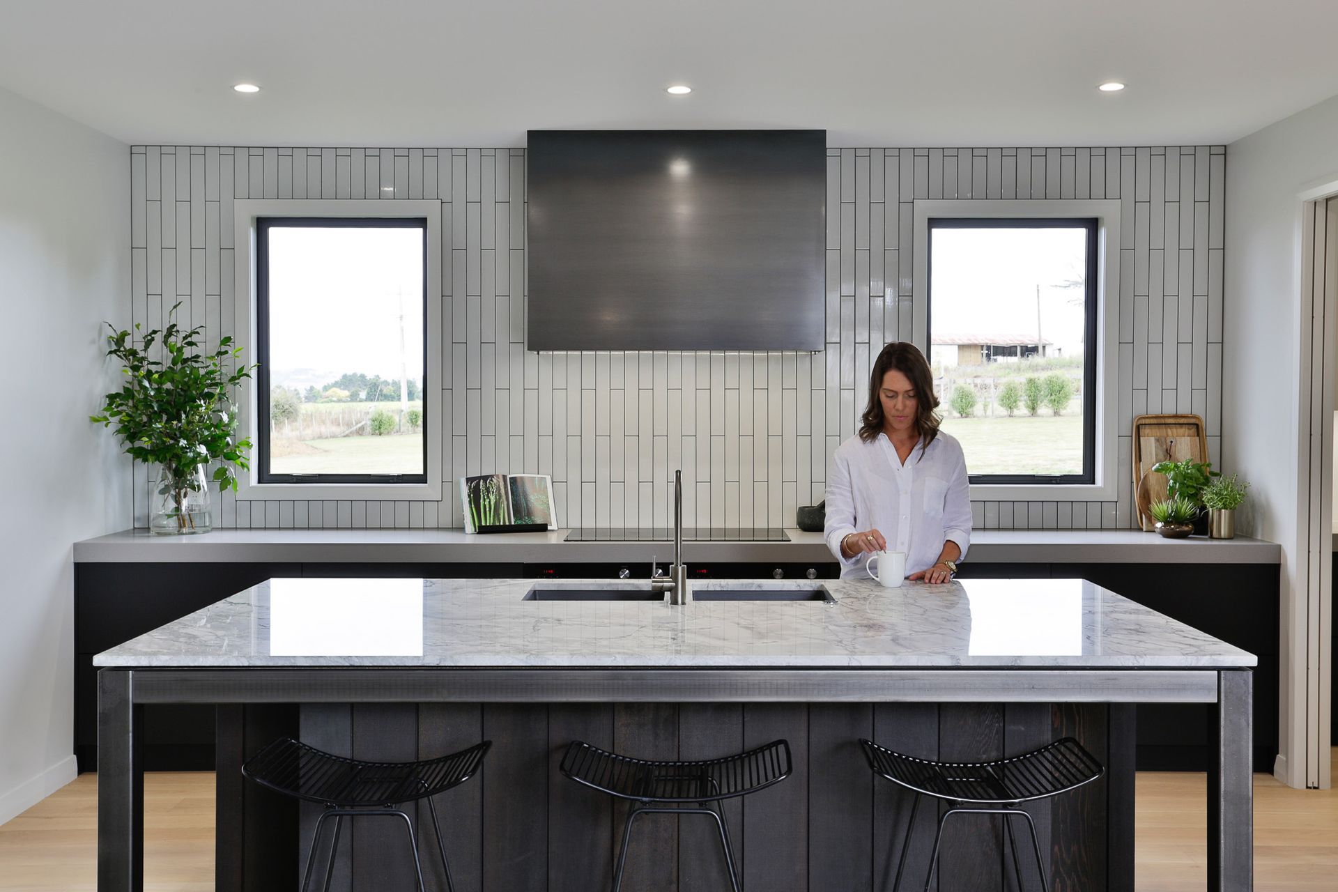 ArchiPro Project Summary - Jericho: A 2018 architectural masterpiece featuring floor-to-ceiling windows, spacious bedrooms for privacy, and a luxurious kitchen designed in collaboration with Carlielle Kitchens, all set against a stunning rural landscape.