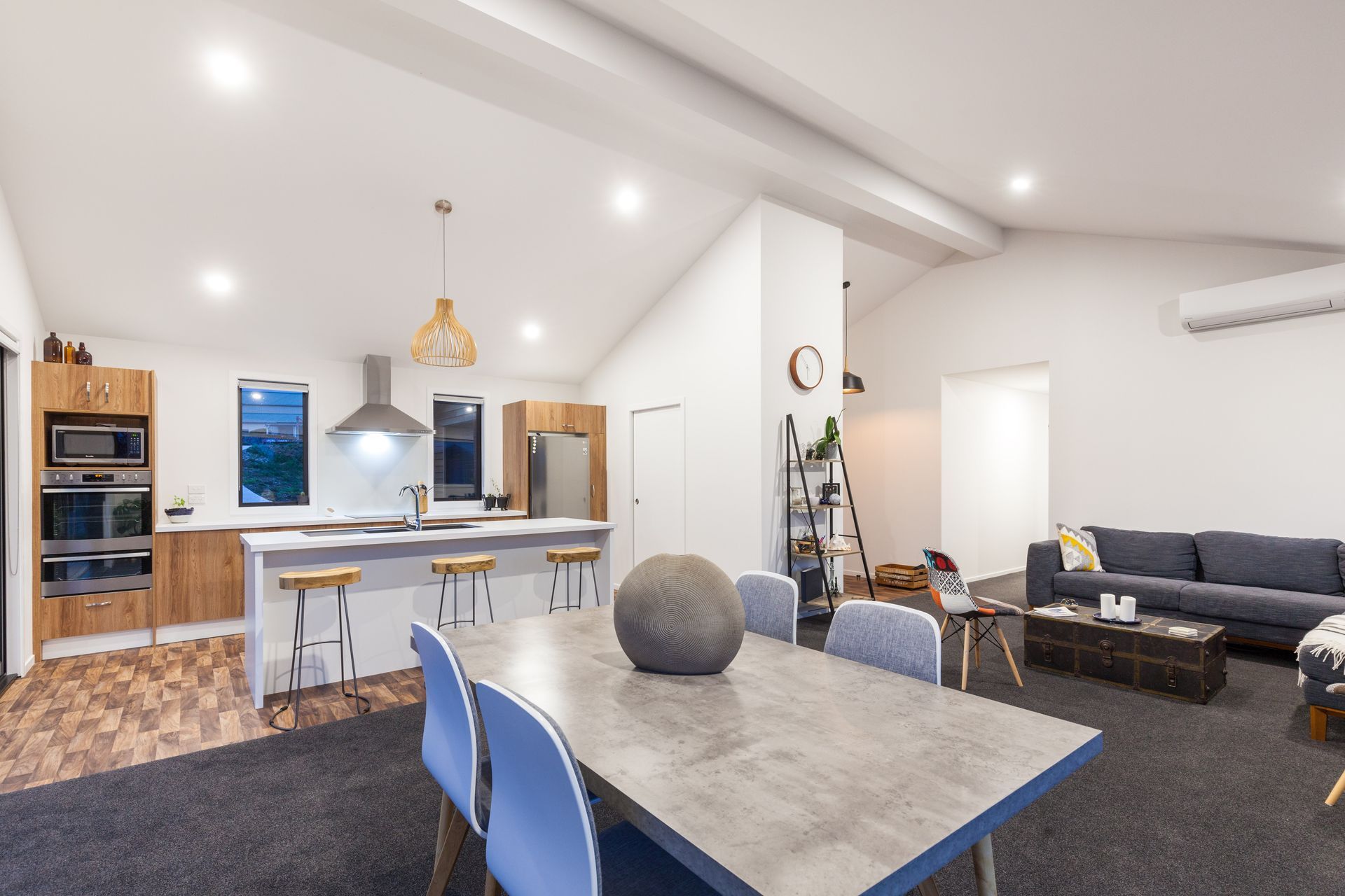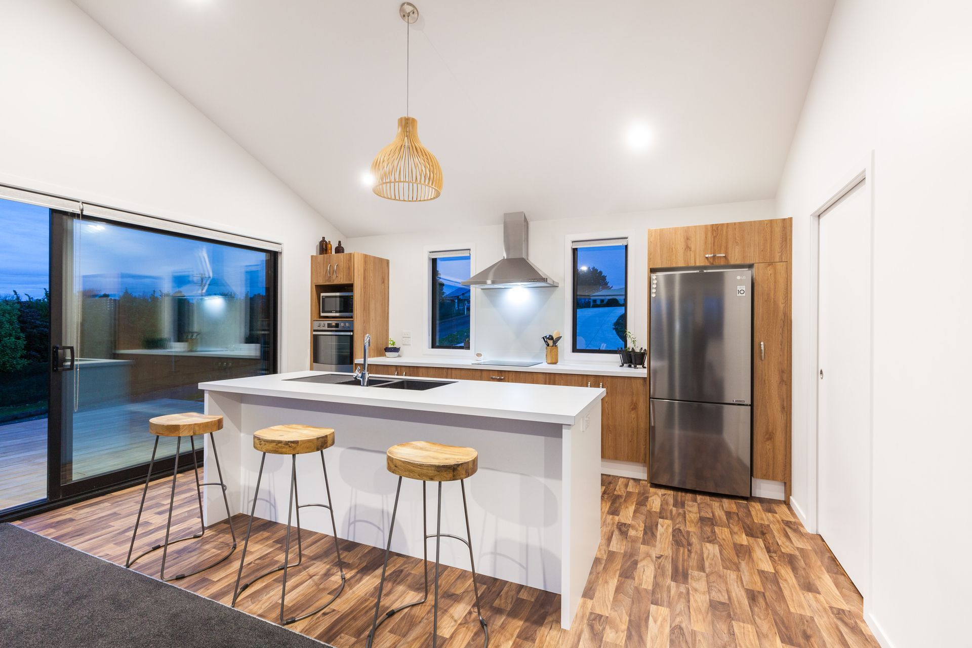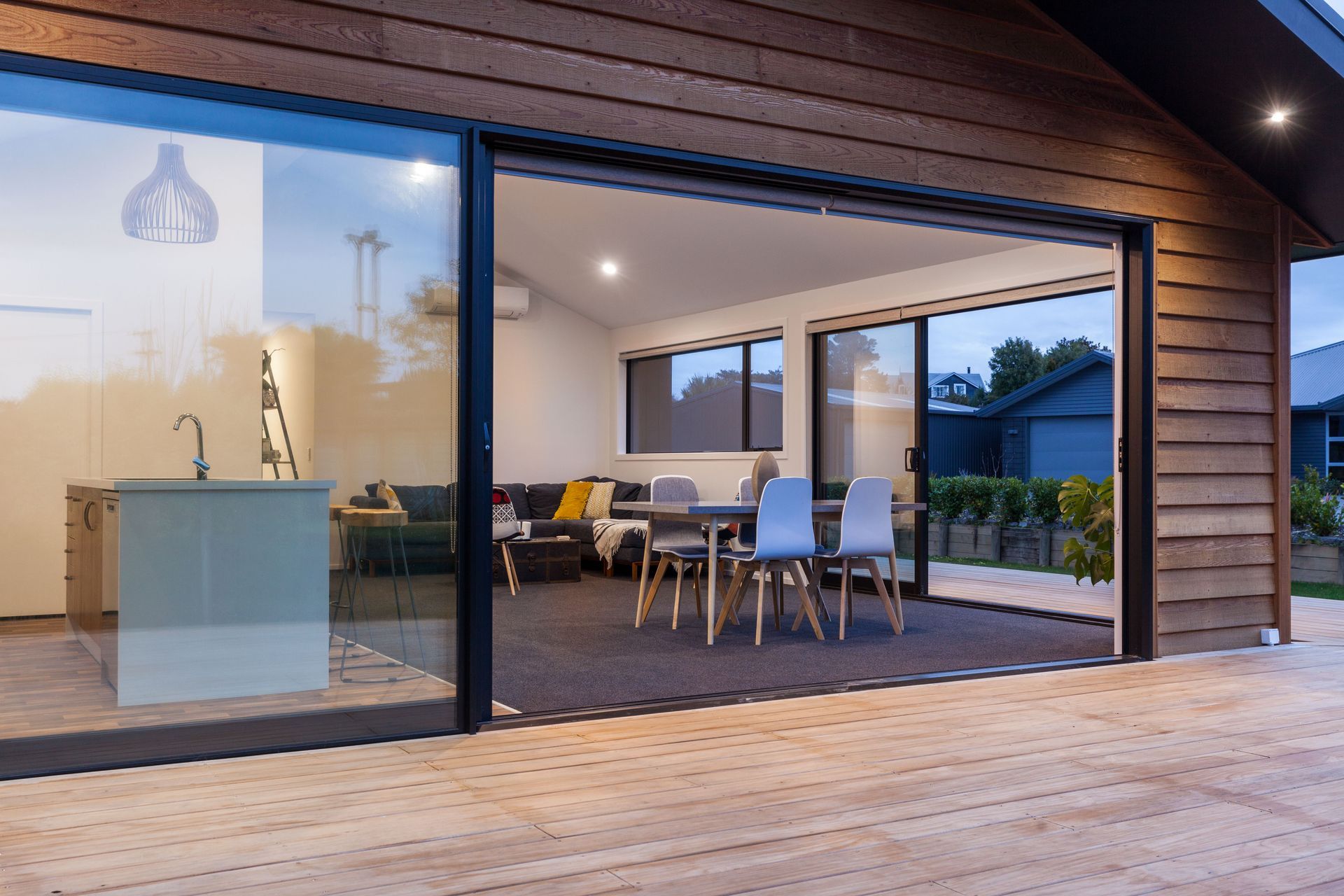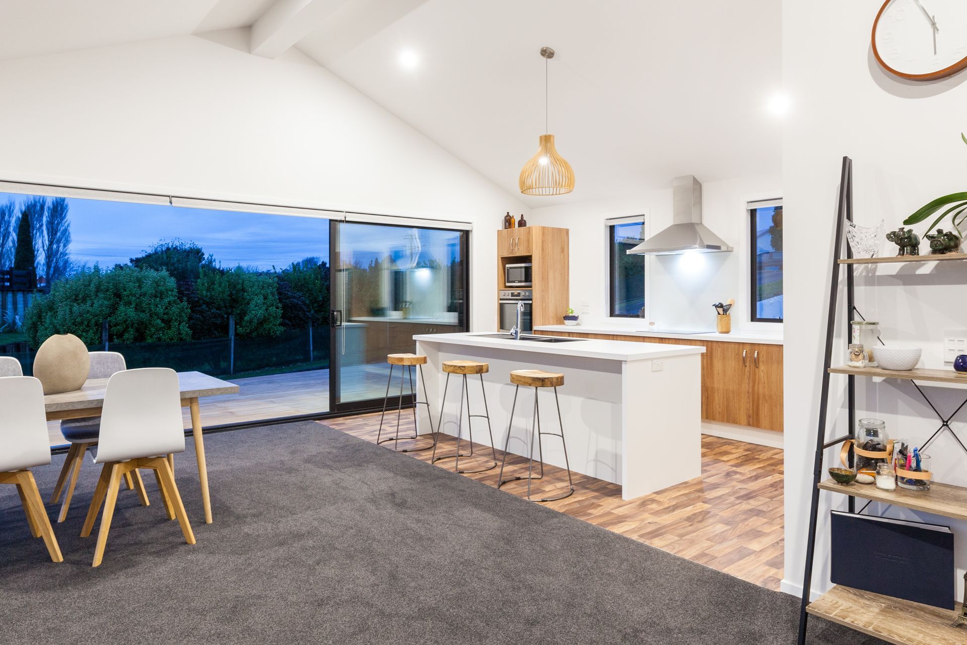 ArchiPro Project Summary - Affordable coastal home in Urenui featuring open-plan living, full-height sliding doors, and a separate double garage, designed to complement the relaxed lifestyle of northern Taranaki.
