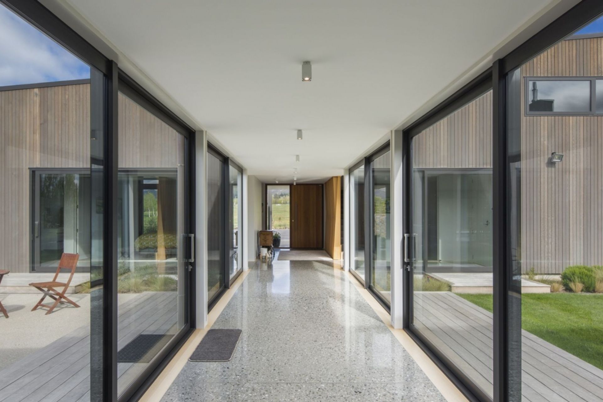 ArchiPro Project Summary - A thoughtfully designed residence harmonizing with its natural surroundings, featuring a goal post footprint and a glazed link that enhances shelter and connectivity between living spaces.
