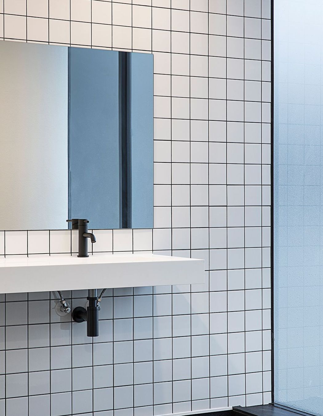 ArchiPro Project Summary - A modern commercial bathroom design featuring grey tiles, composite materials, and glass elements for a spacious, inviting atmosphere.