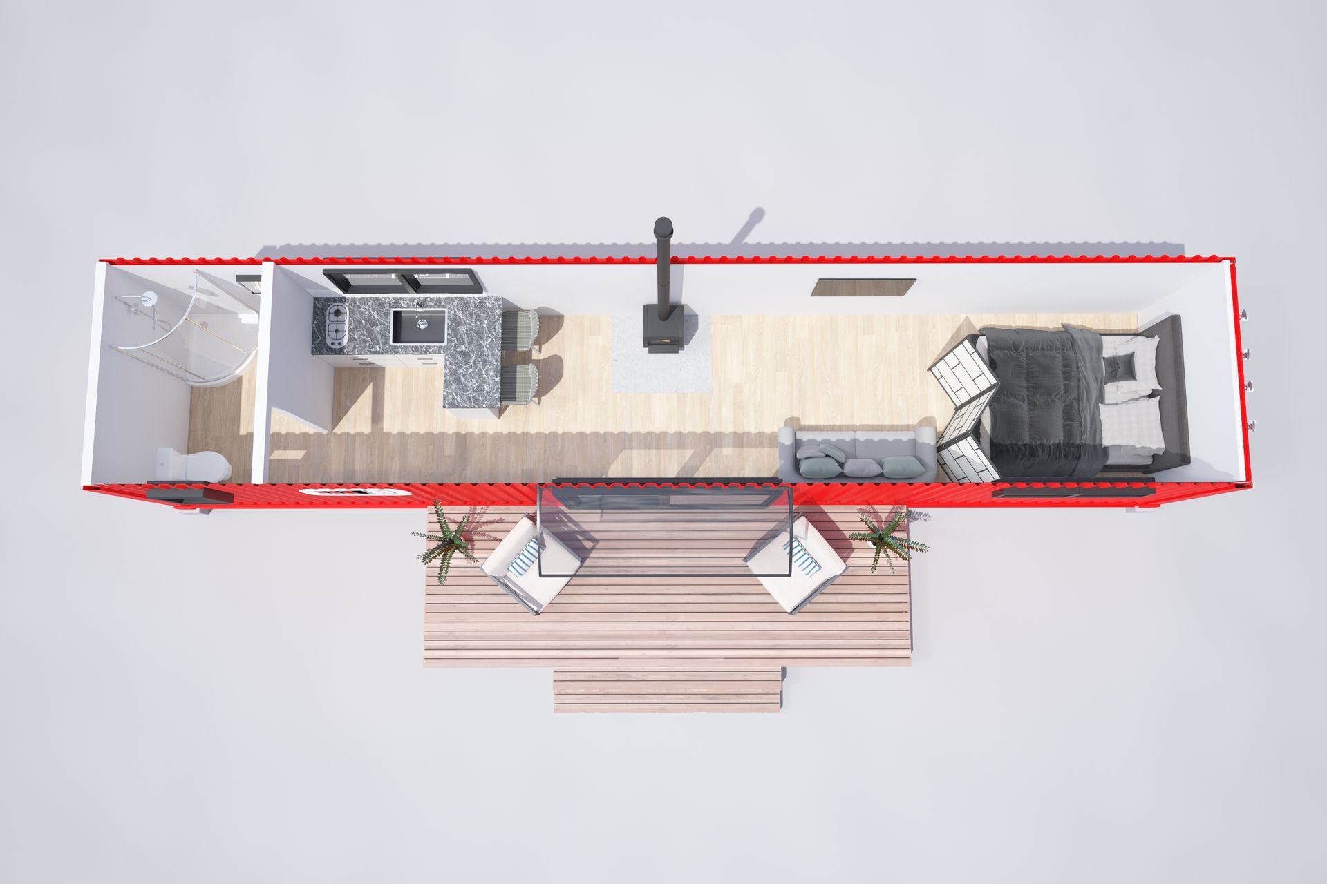ArchiPro Project Summary - Innovative 3D renders showcasing a redesigned 40ft shipping container tailored for comfortable living.
