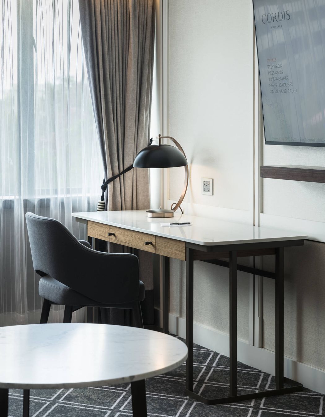 ArchiPro Project Summary - Refurbishment of the iconic Langham Hotel in Auckland, New Zealand, featuring a clean and contemporary aesthetic that aligns with the new Cordis Hotel brand.