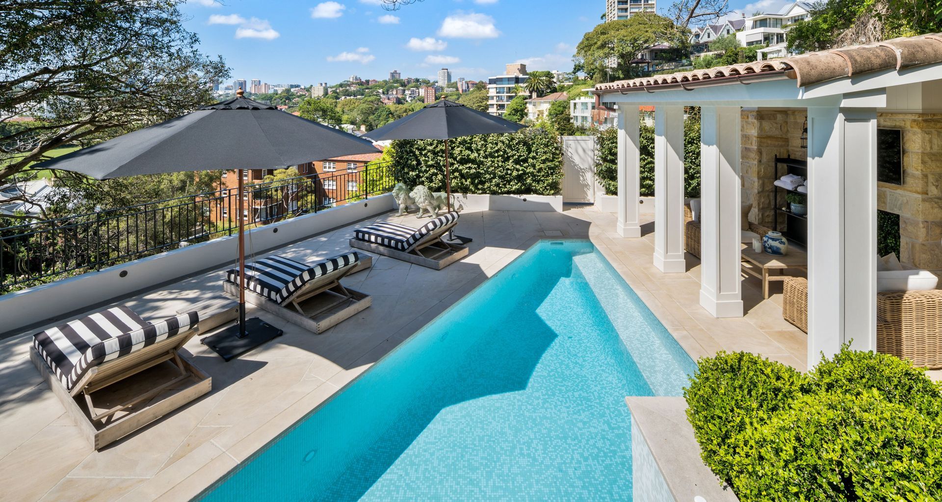 ArchiPro Project Summary - Contemporary Darling Point residence completed in 2023, designed by Lynda Kerry Interior Design, featuring a harmonious blend of American heritage style and Spanish mission design, highlighted in Belle Magazine with Sareen Stone's natural materials.