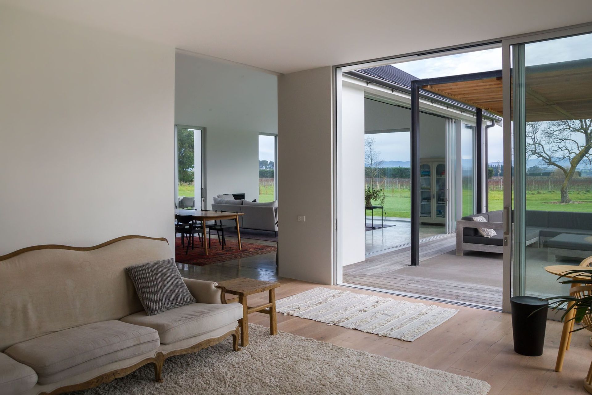 ArchiPro Project Summary - De Groot House: A stunning 400 square metre family residence in Martinborough, expertly crafted by Holmes Construction and designed by Victoria Read Architecture, featuring beautifully landscaped outdoor spaces by Hamish Moorhead Landscapes.