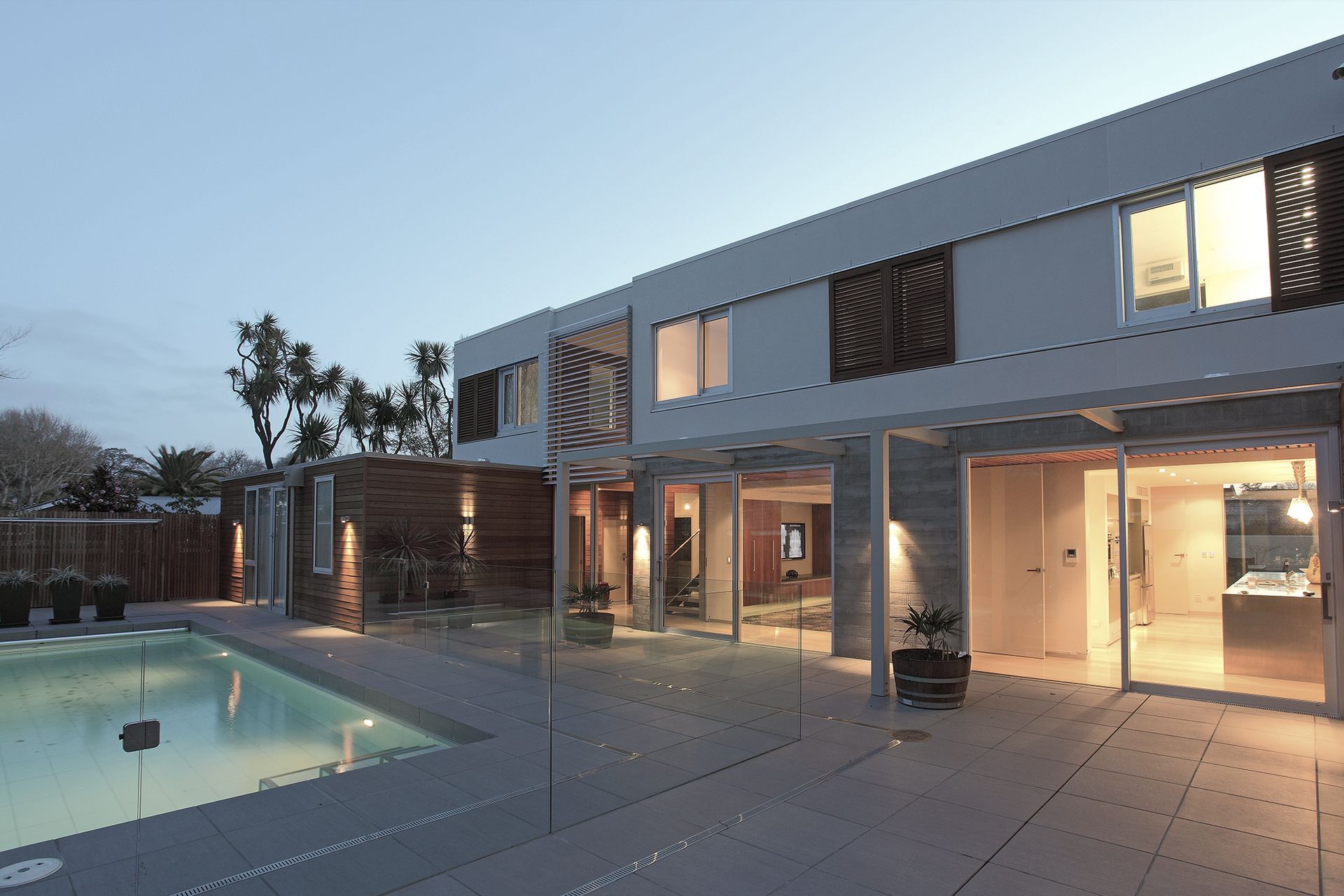 ArchiPro Project Summary - Award-winning family home in Fendalton featuring quality timber flooring, feature tilt slab panels, and seamless indoor-outdoor flow to the pool and entertaining areas.
