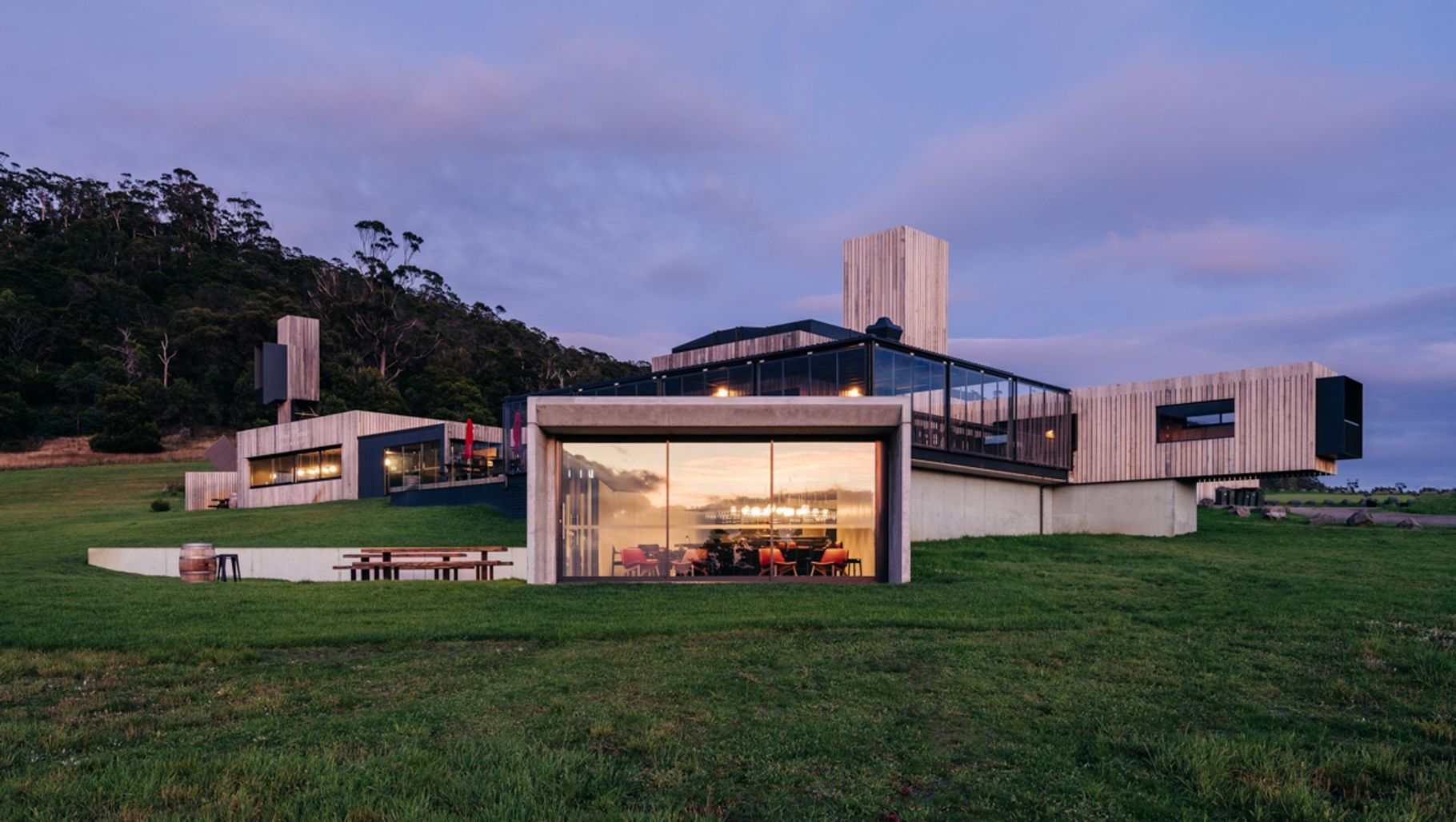 ArchiPro Project Summary - Expansion of Devil's Corner Cellar Door enhances visitor experience with a distinct timber-clad lookout, all-weather courtyard, and immersive tasting areas, seamlessly blending with Tasmania's stunning landscape.