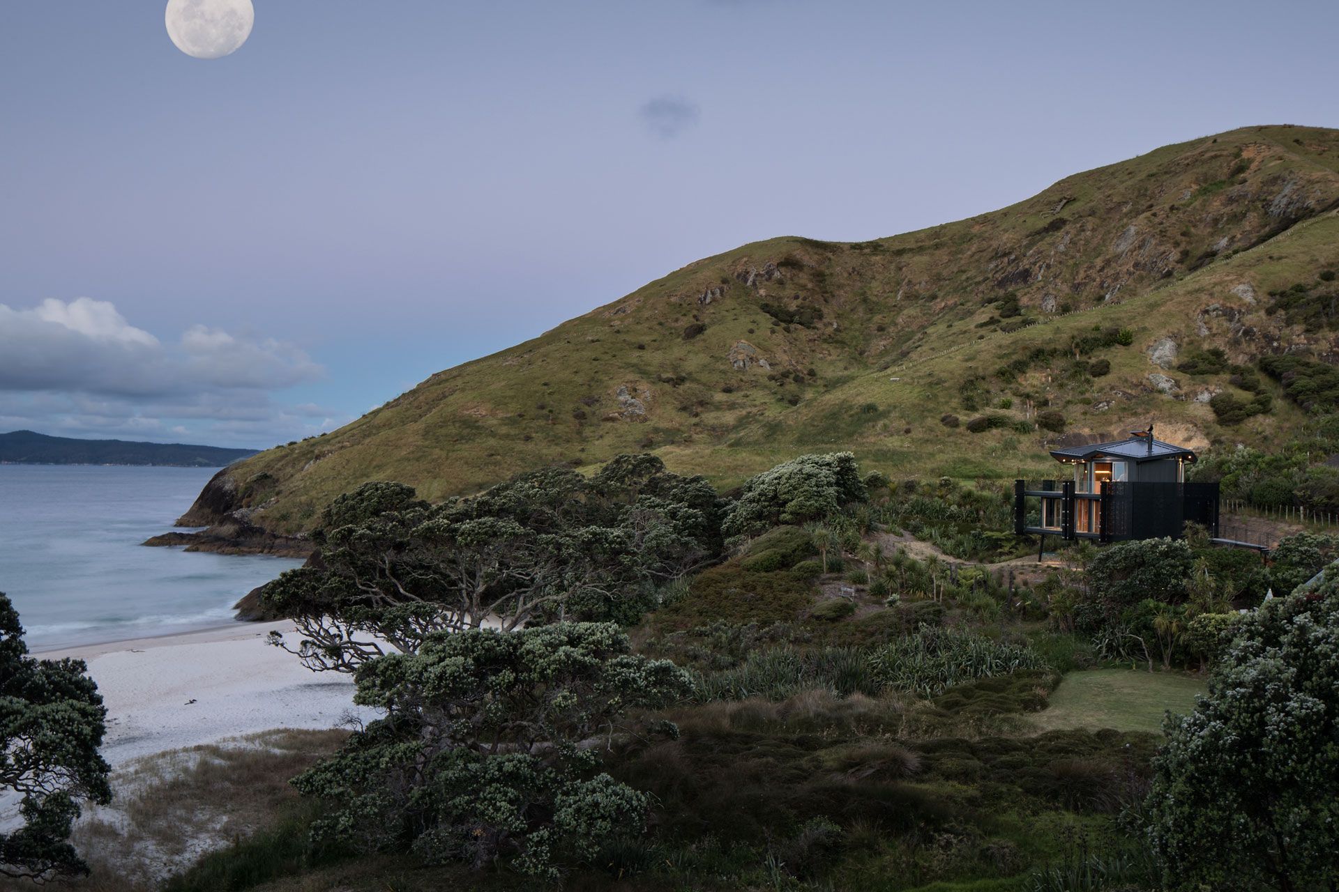 ArchiPro Project Summary - A sculptural retreat at Otama Beach, the DNA House features innovative bi-folding perforated metal screens inspired by the family's DNA, seamlessly blending indoor and outdoor spaces while offering stunning views and a unique connection to nature.