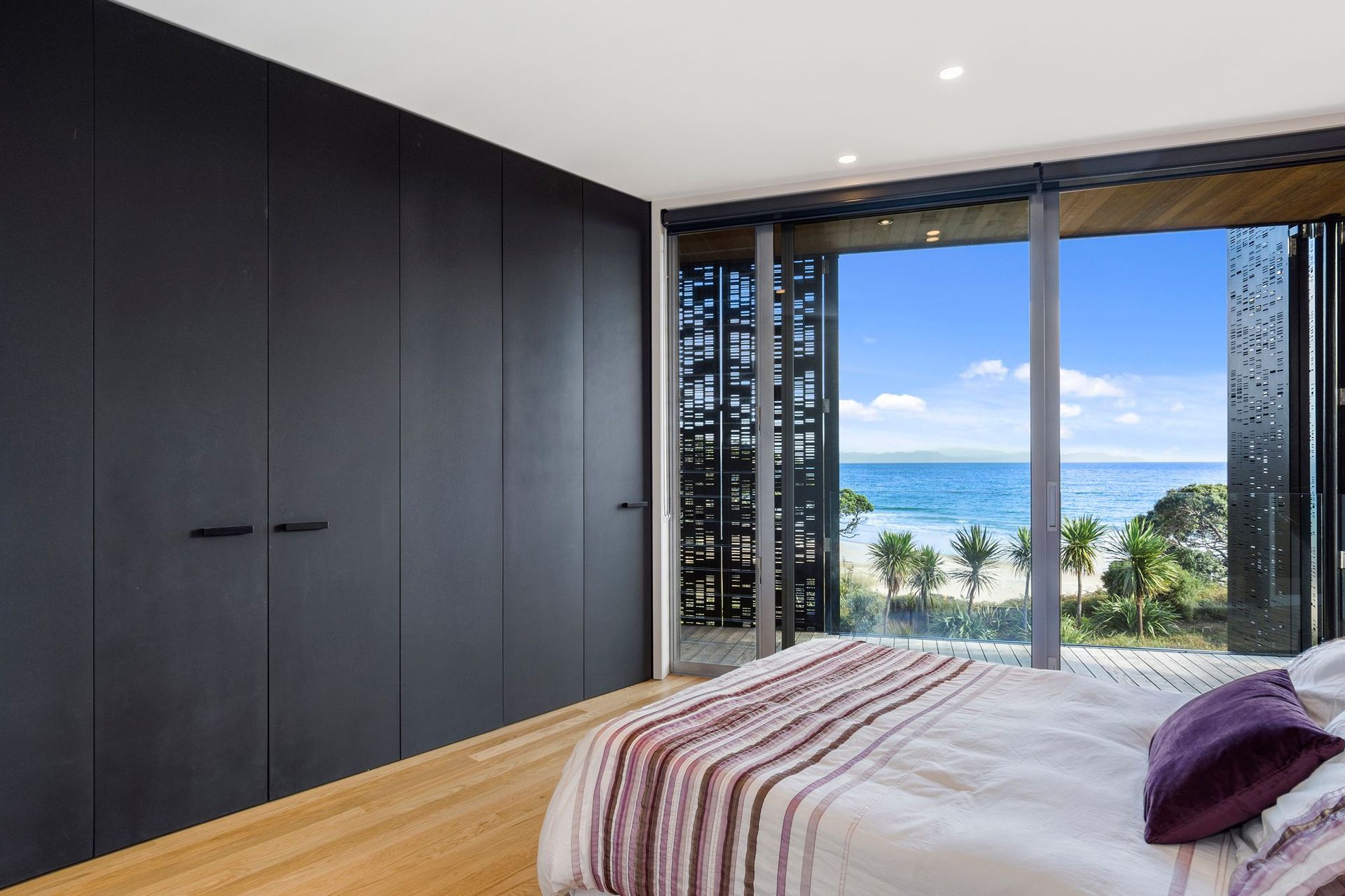 ArchiPro Project Summary - A sculptural retreat for a New York City family, featuring bi-folding perforated metal screens, warm timber interiors, and a seamless connection to the outdoors, designed to enhance the living experience while celebrating the family's unique DNA.