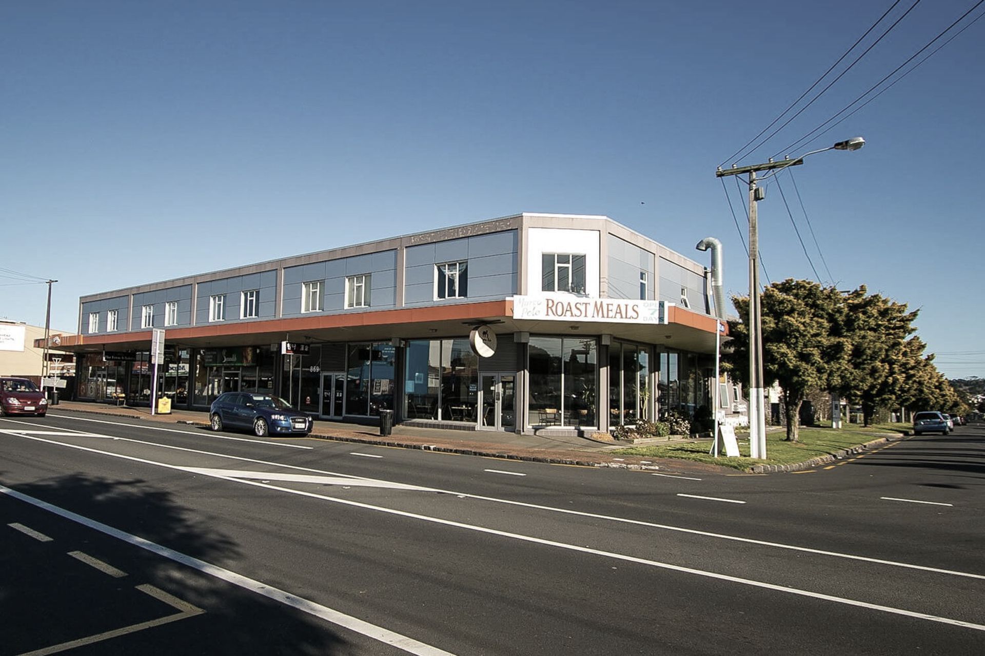 ArchiPro Project Summary - A mixed-use commercial development featuring five retail shops and five residential apartments, strategically located on Dominion Road, completed in 2004, attracting reputable tenants including a renowned French bakery.
