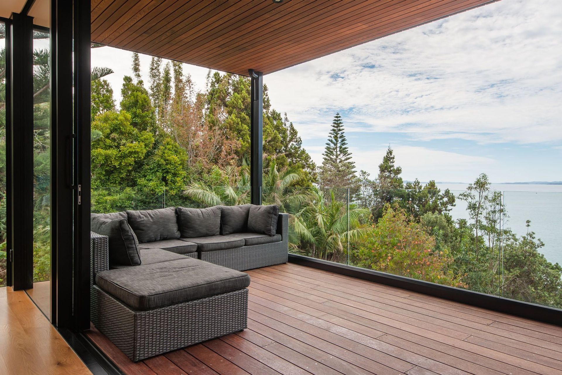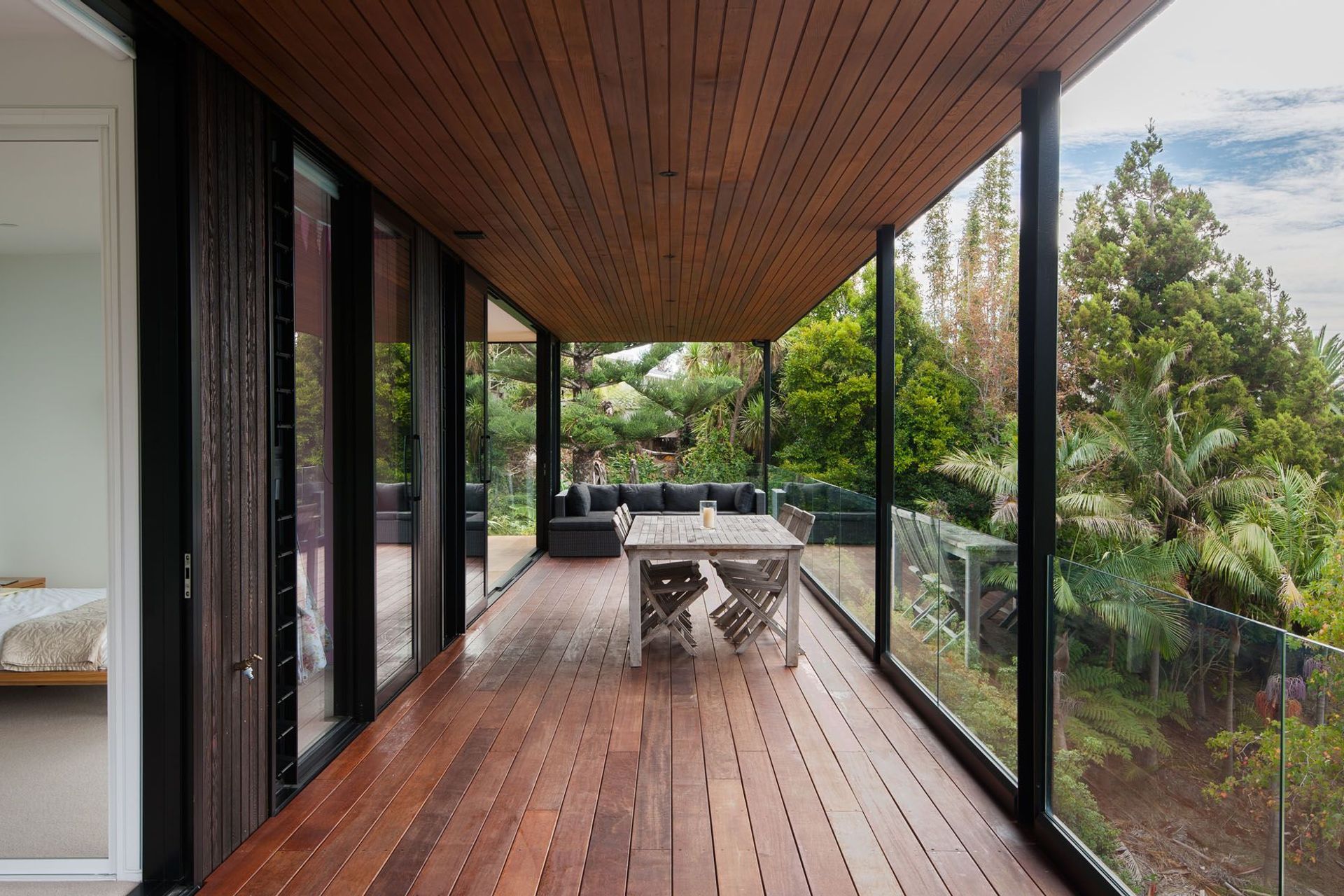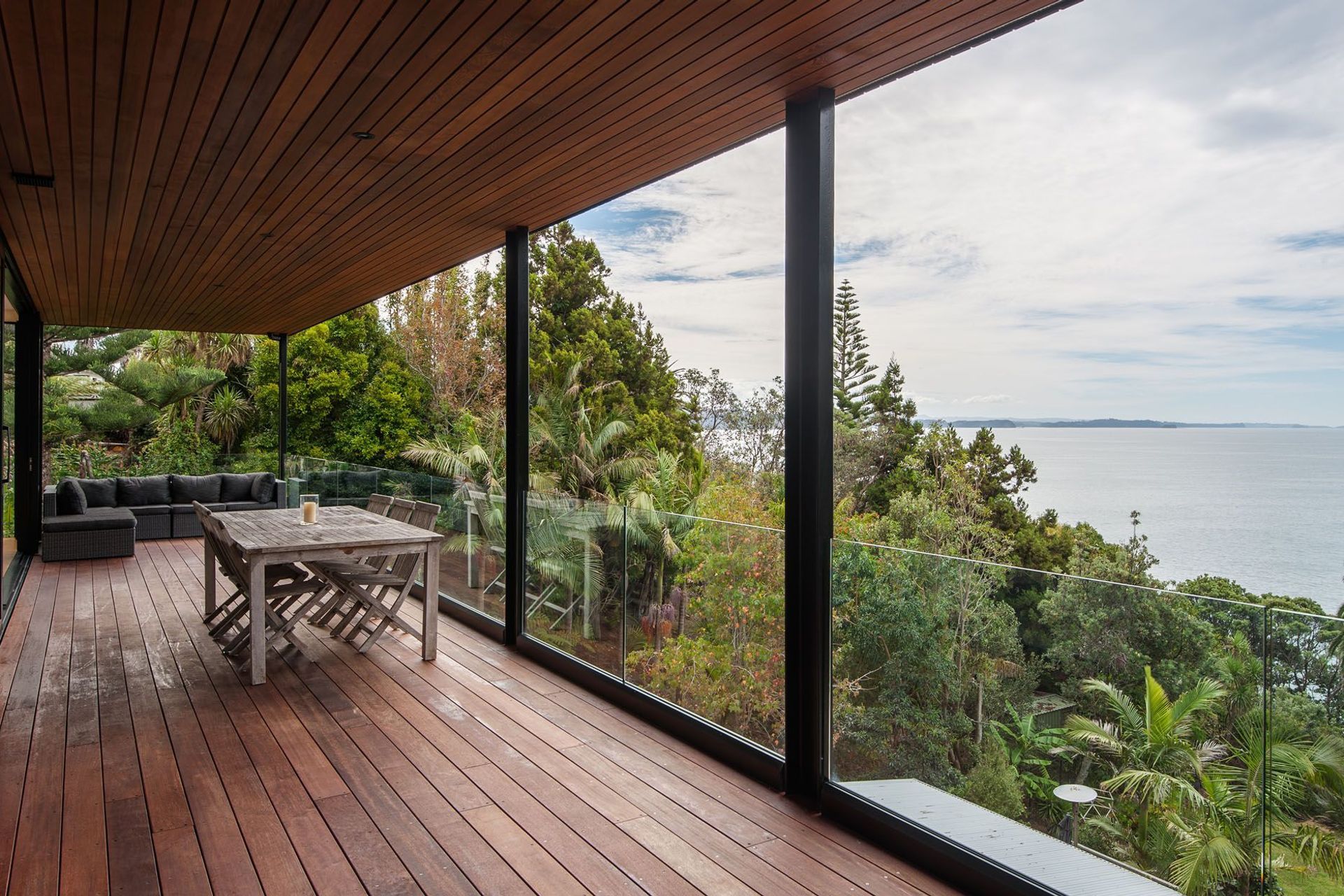 ArchiPro Project Summary - Award-winning modern cedar residence designed to maximize stunning views on a challenging steep site, featuring 240sqm of living space with 3 bedrooms and 2 bathrooms.