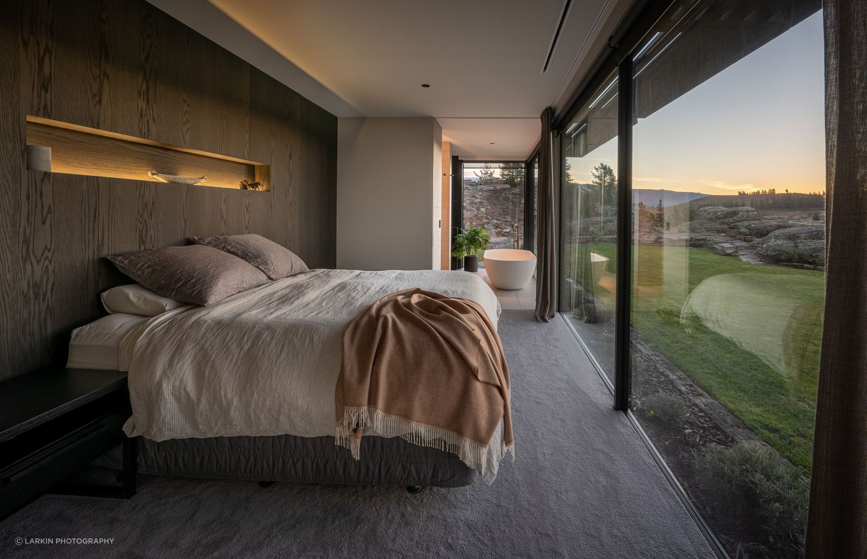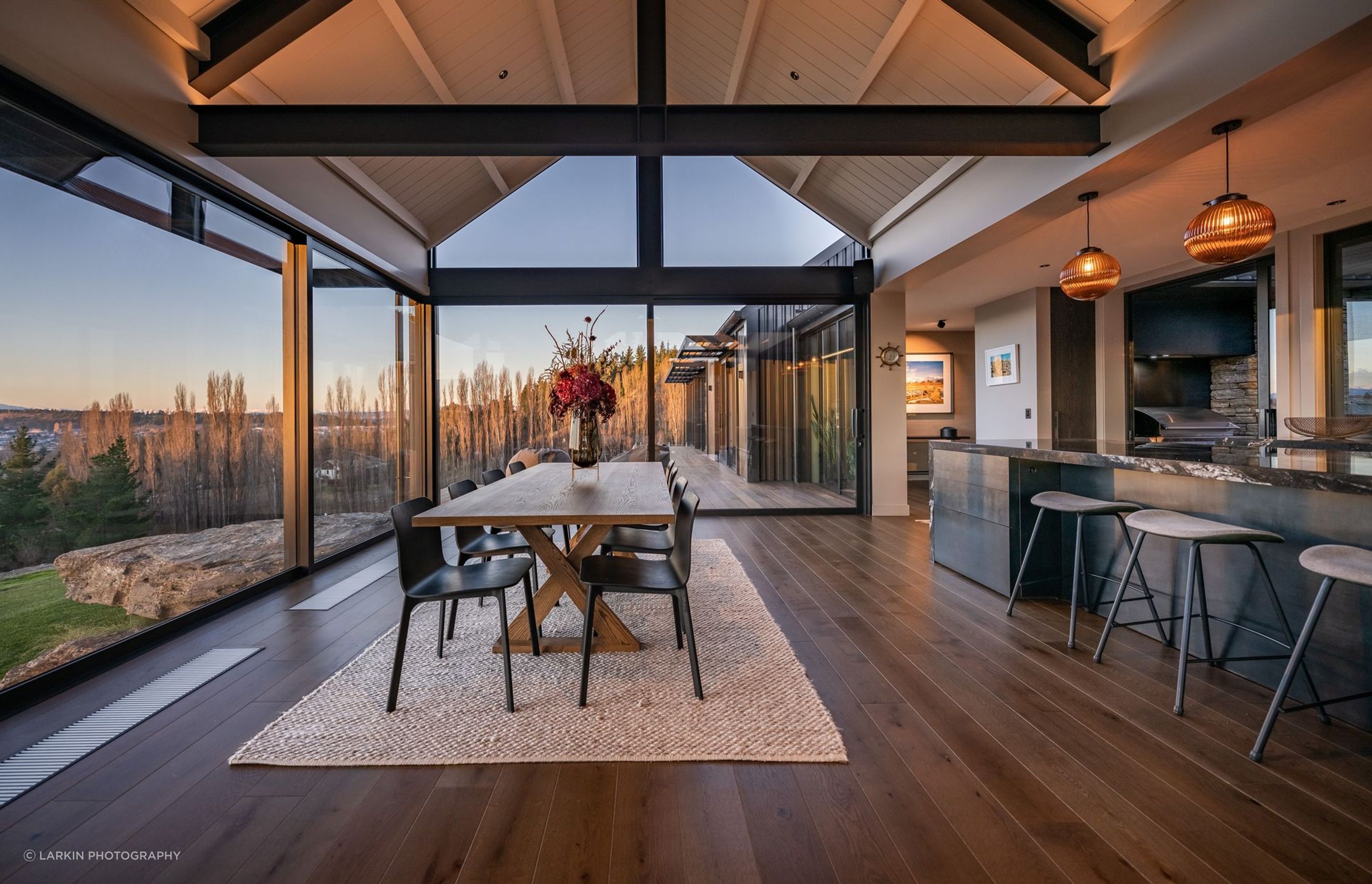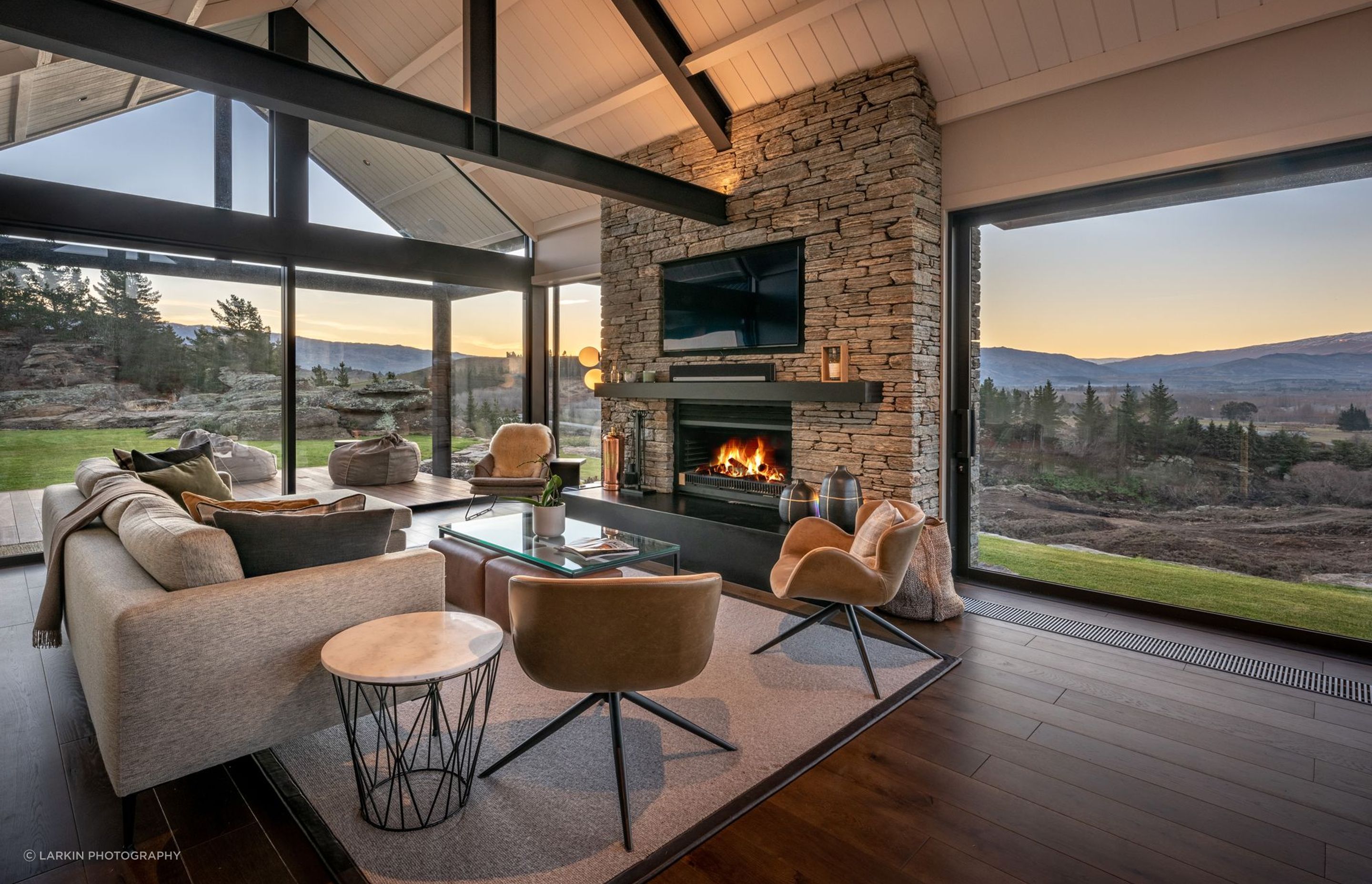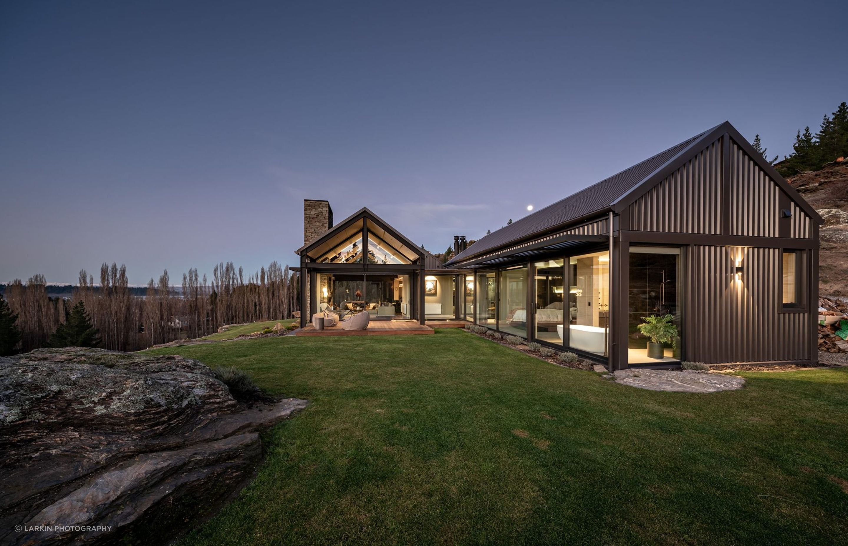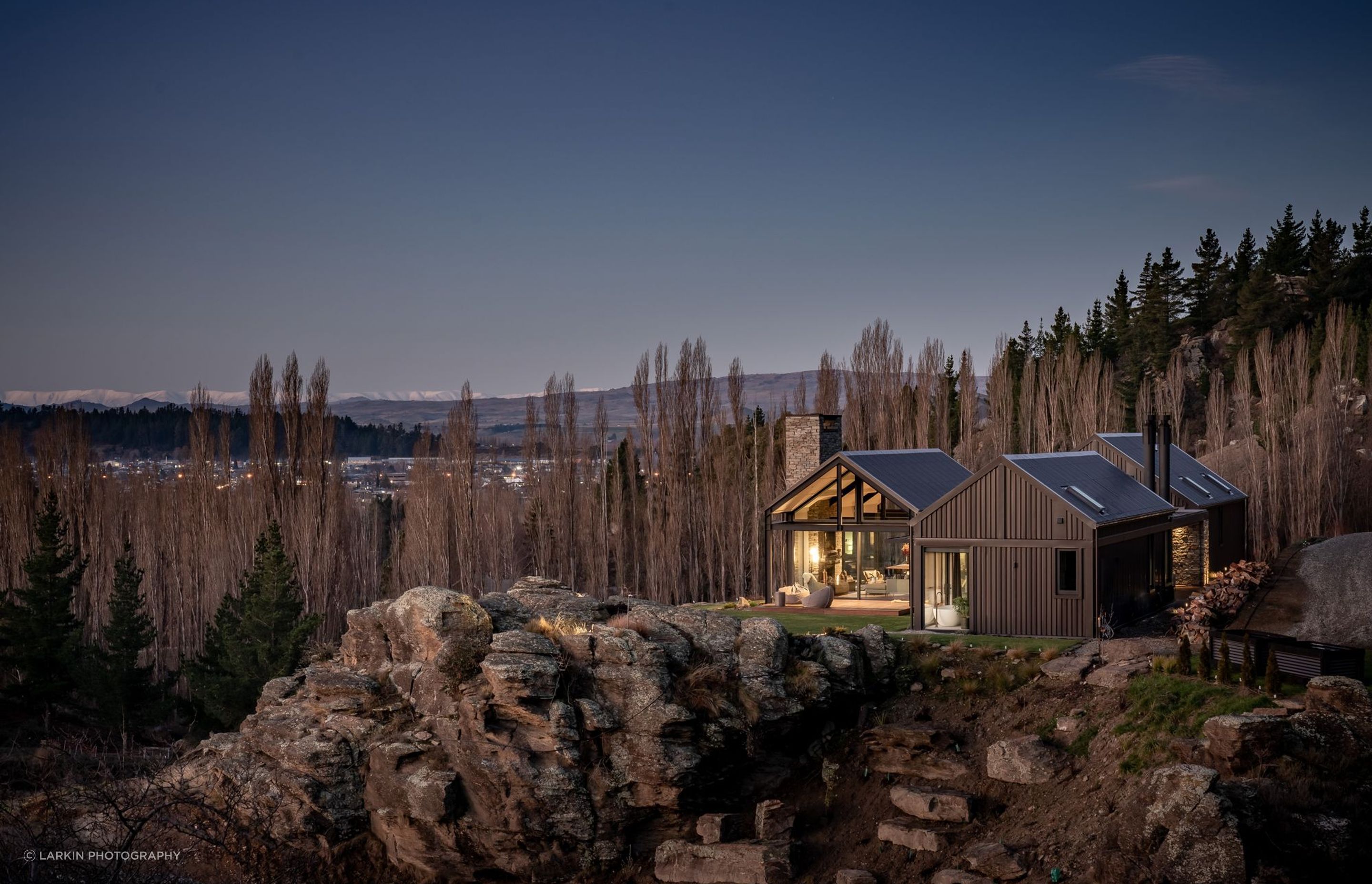 ArchiPro Project Summary - A serene retreat nestled in the stunning schist landscape of Earnscleugh, featuring three gable forms that harmoniously integrate with the environment, offering breathtaking views and inviting outdoor spaces for family and friends.