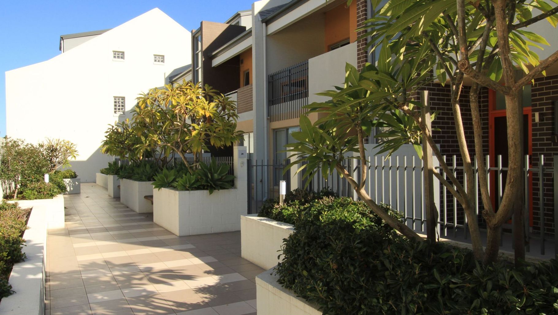 ArchiPro Project Summary - Contemporary townhouses and apartments featuring thoughtfully designed landscaped grounds, innovative solutions for a central courtyard drop, and inviting street entries that enhance the living experience year-round.