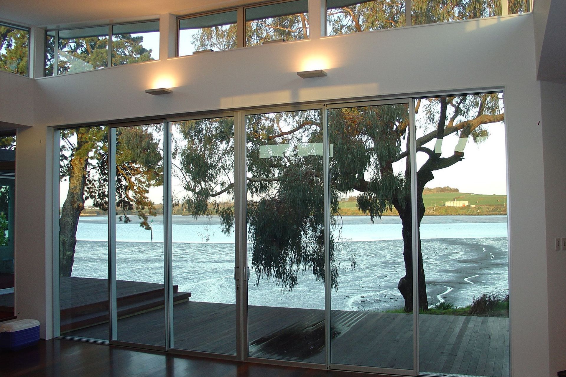 ArchiPro Project Summary - A secure residence featuring a striking street frontage that transitions into a spacious interior with stunning riverfront views, enhanced by high windows that invite natural light and reflections from the East Tamaki River.