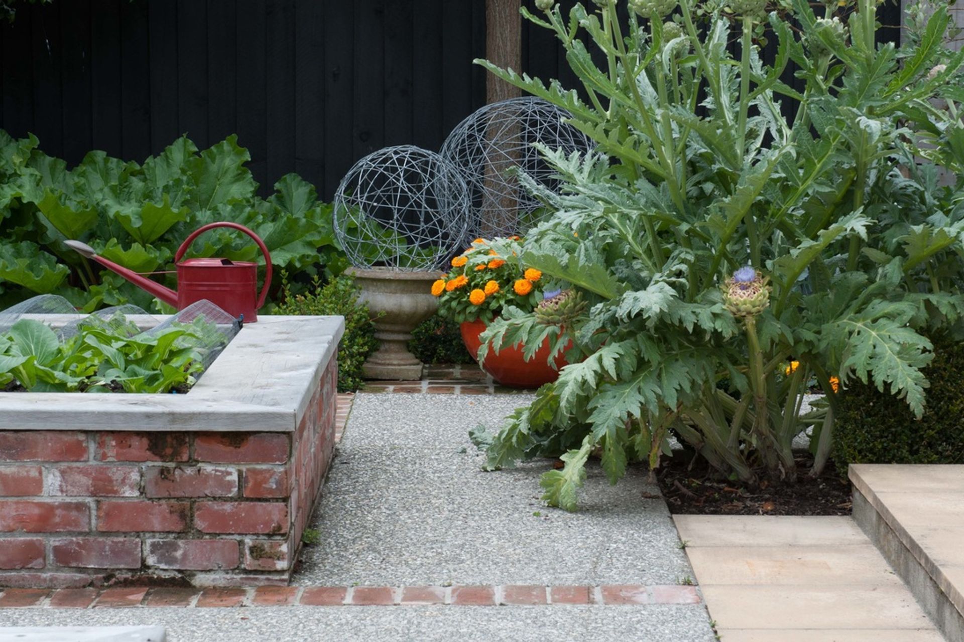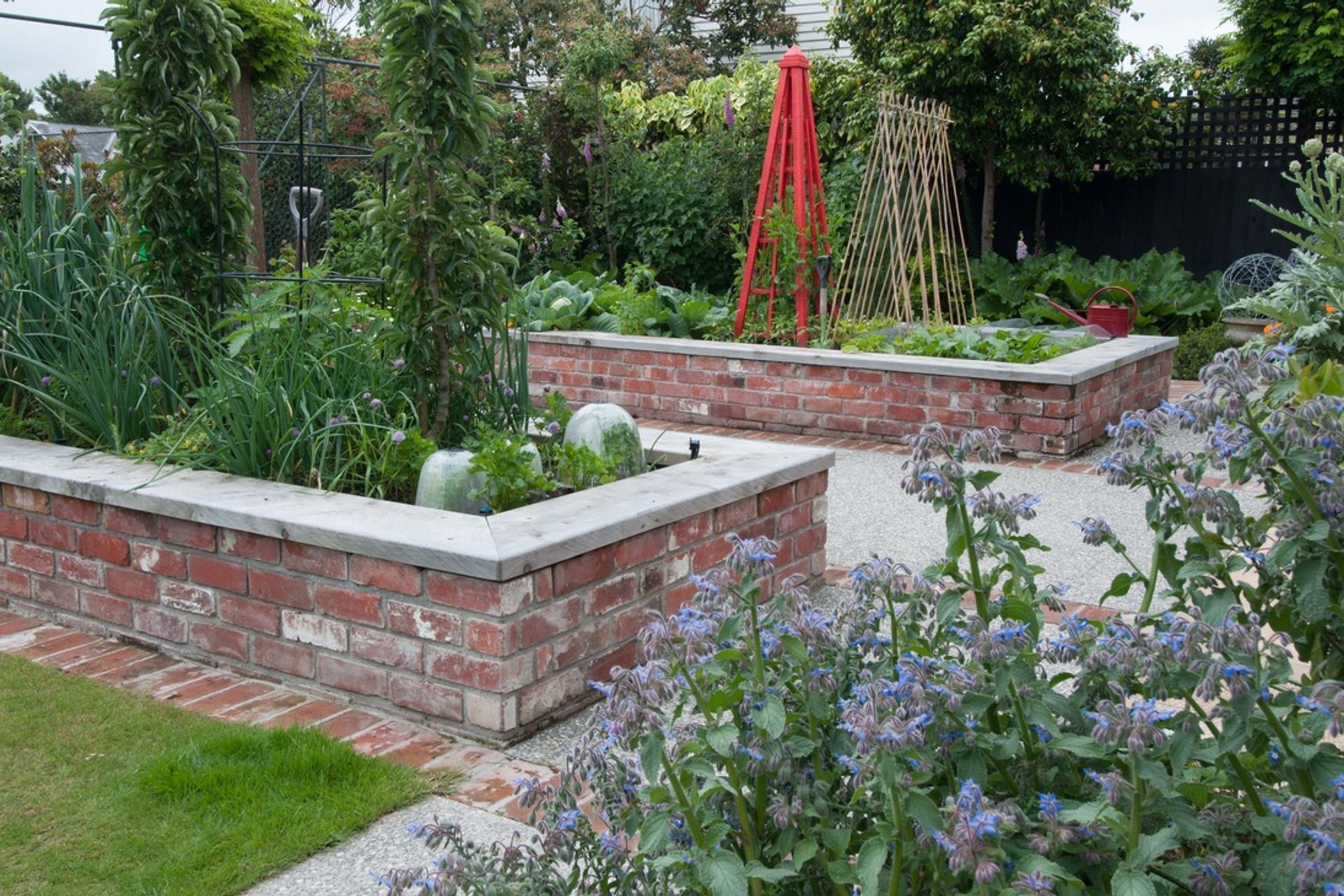 ArchiPro Project Summary - A vibrant edible courtyard designed for a passionate owner, featuring raised beds filled with an array of fresh produce, including fruits, berries, and vegetables, creating a sustainable and productive garden space.