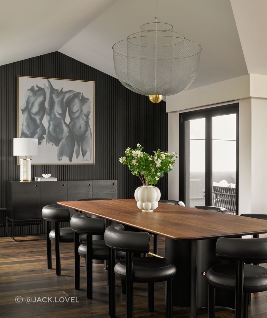 Set beneath soaring ceilings, the dining space is where Deco glamour and family life converge. Rich textures and warm timber tones frame the space between kitchen and lounge. Designed for entertaining, made for every day.