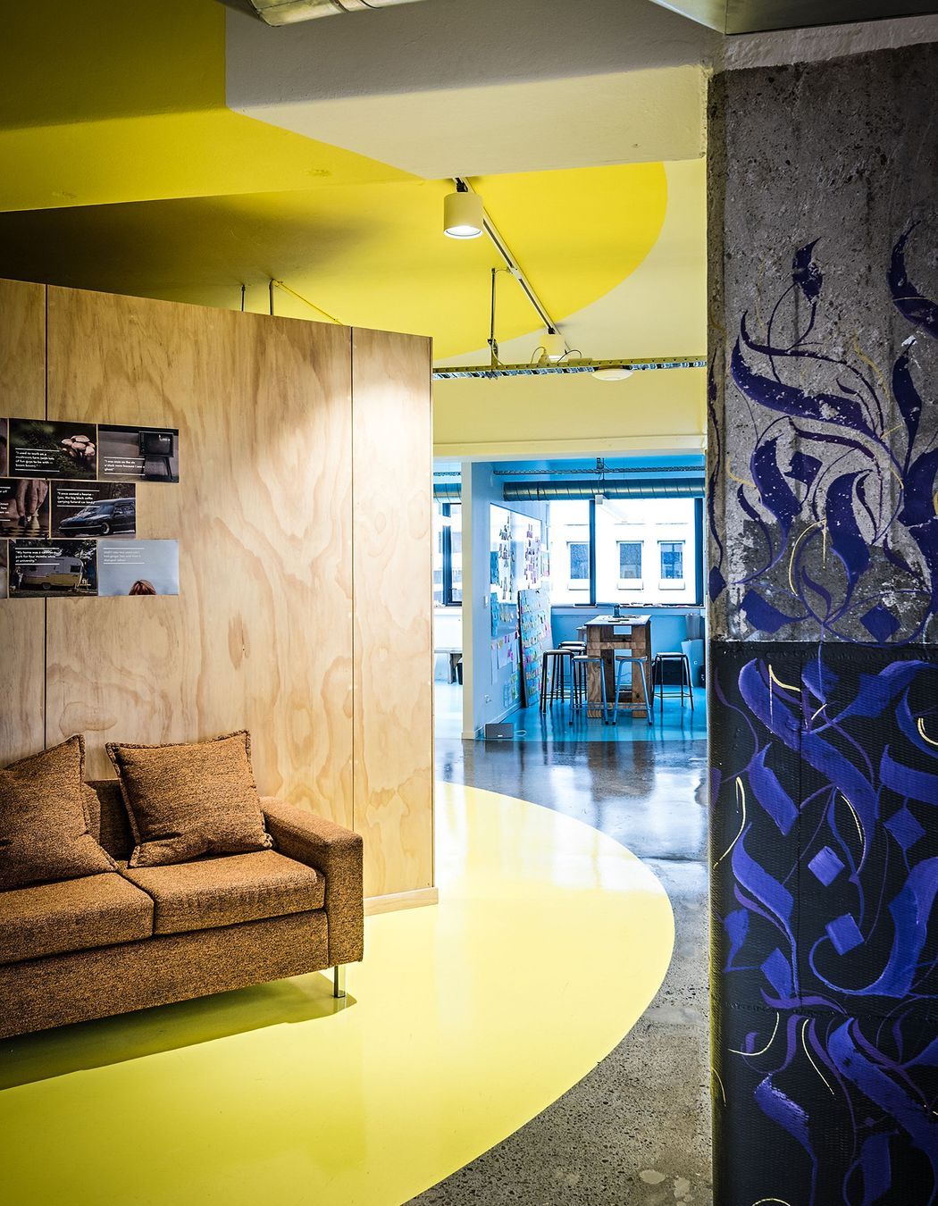 ArchiPro Project Summary - Empathy Studio: A dynamic workspace that embodies the brand's identity, blending raw sophistication with flexible design to foster collaboration and creativity in a welcoming environment.