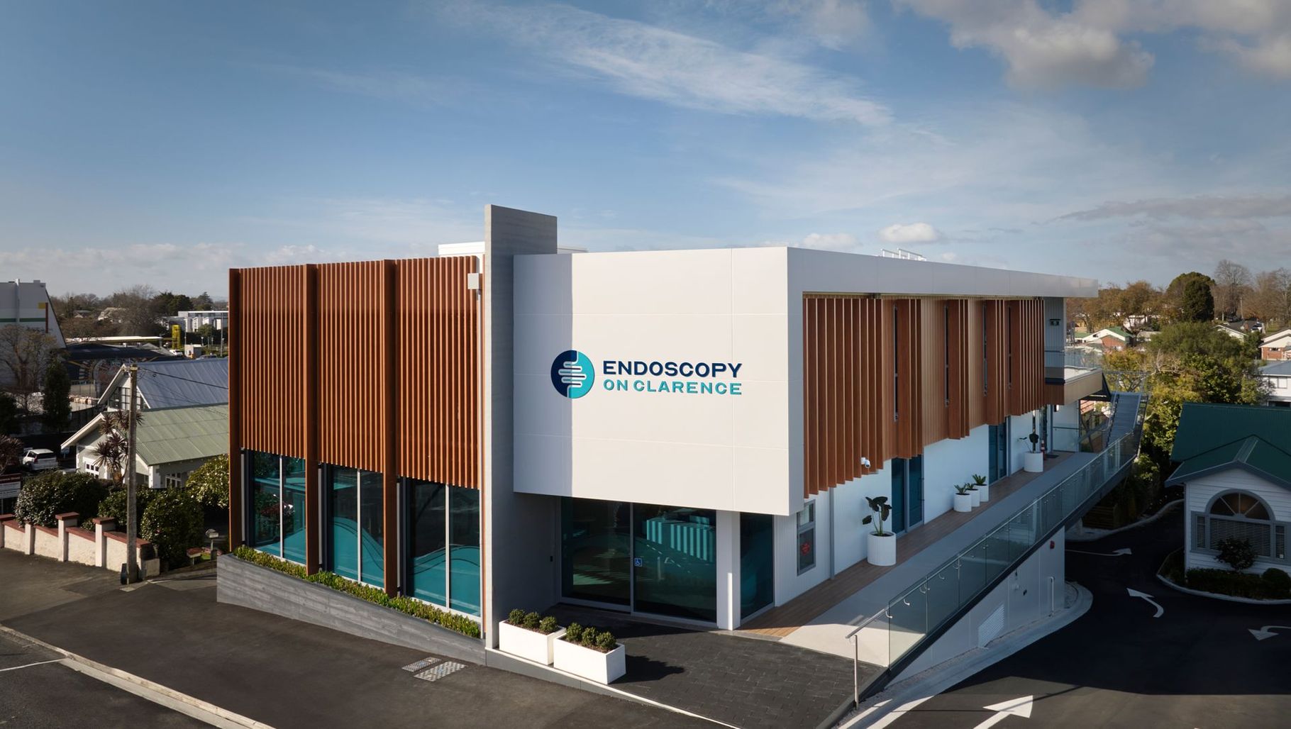 ArchiPro Project Summary - Contemporary healthcare facility designed for Endoscopy on Clarence, completed in 2024, featuring a spacious two-storey atrium, advanced procedure rooms, and a seamless flow for patients and staff, enhancing the healthcare experience in Hamilton.