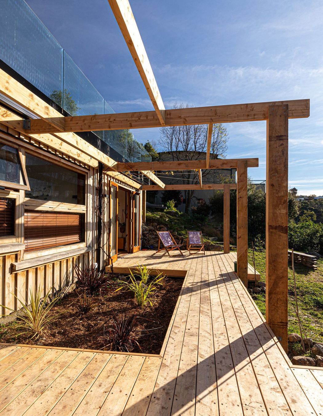 ArchiPro Project Summary - Energy efficient home on Richmond Hill, designed to maximize northern sunlight and stunning views of the Sumner coastline, creating a warm and inviting atmosphere integrated into the hillside.