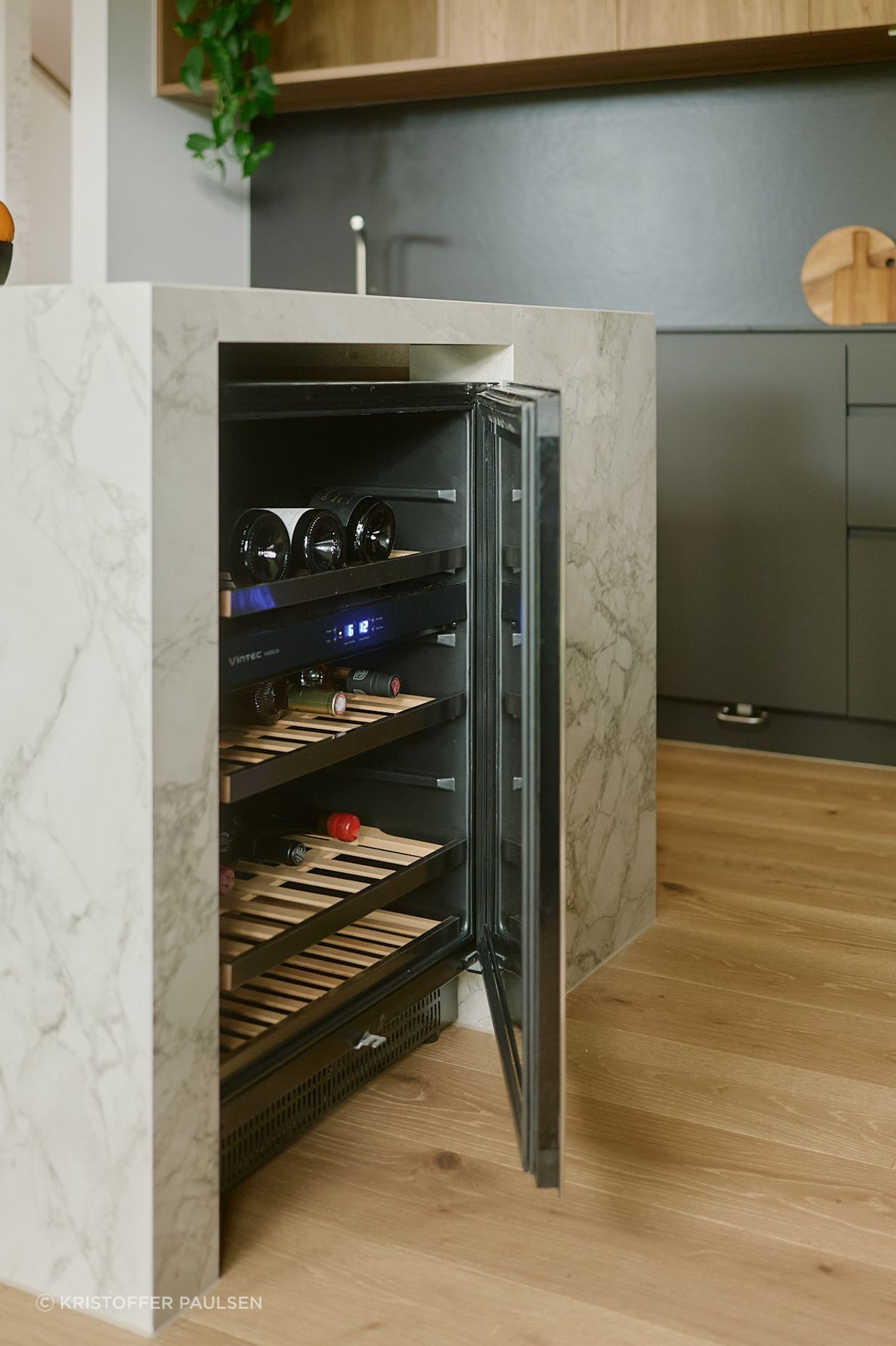 ArchiPro Project Summary - A contemporary kitchen renovation featuring a built-in bar and a large Dekton stone island, designed for entertaining, completed in 2024 for clients Simon and Ghislaine Chown by K.Holland Architectural Interiors.