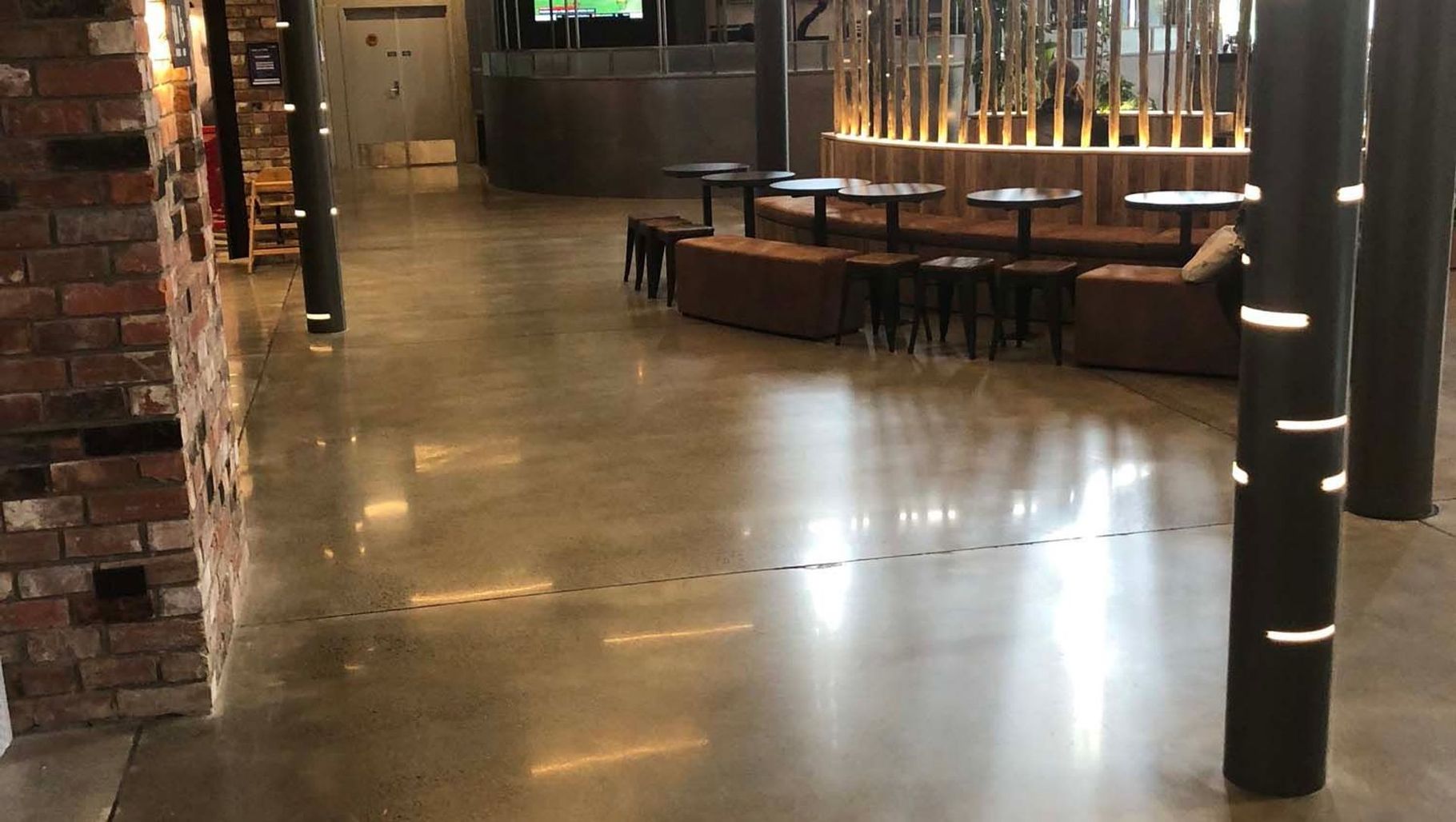 ArchiPro Project Summary - Polished concrete flooring featuring Beach House Premium range with a classic salt & pepper diamond-polished finish, expertly crafted for the EntX project in Christchurch.
