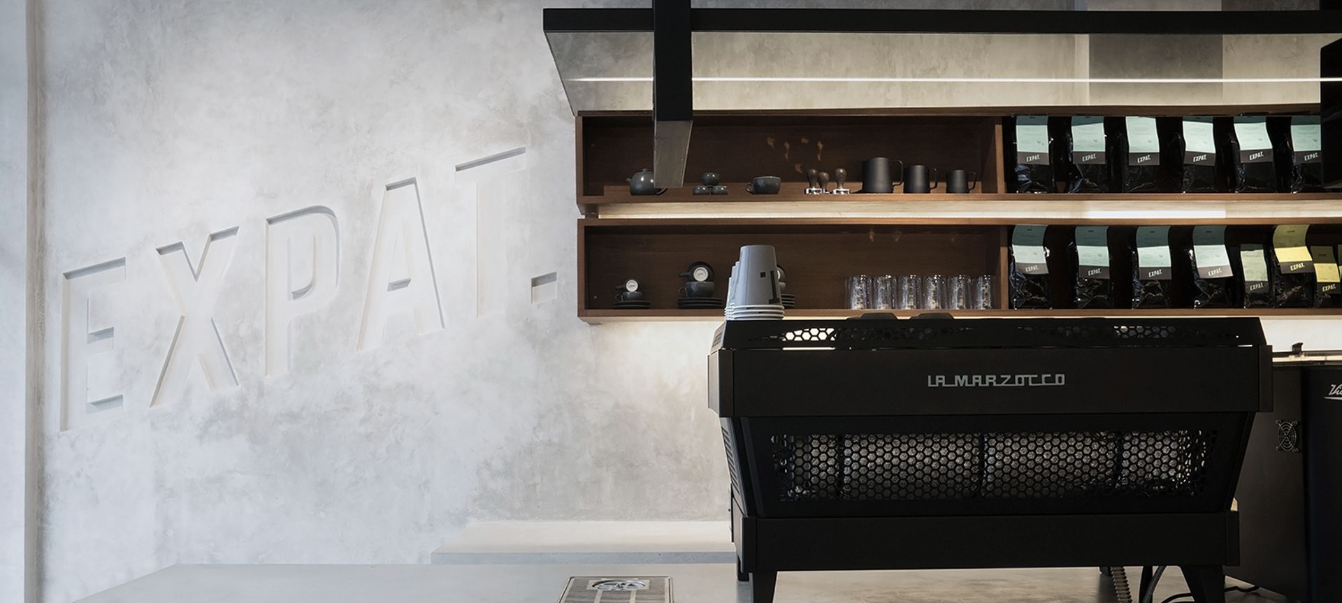 ArchiPro Project Summary - EXPAT Roasters: A flagship café in Seminyak, Bali, featuring bold branding, a custom coffee machine, and high-end finishes that reflect the founders' philosophy of precision in coffee roasting.