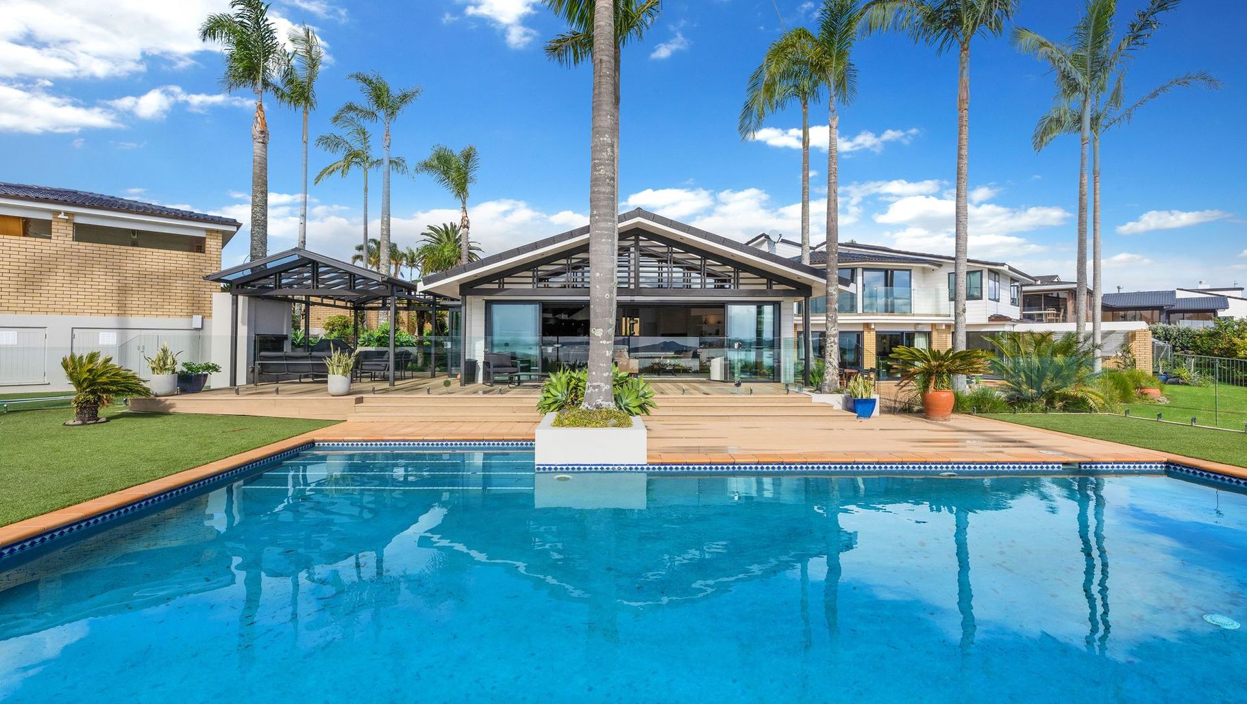 ArchiPro Project Summary - A stunning modern rejuvenation and extension of a waterfront property in eastern Auckland, completed in 2023, featuring seamless indoor-outdoor living, enhanced entertaining spaces, and luxurious upgrades throughout.