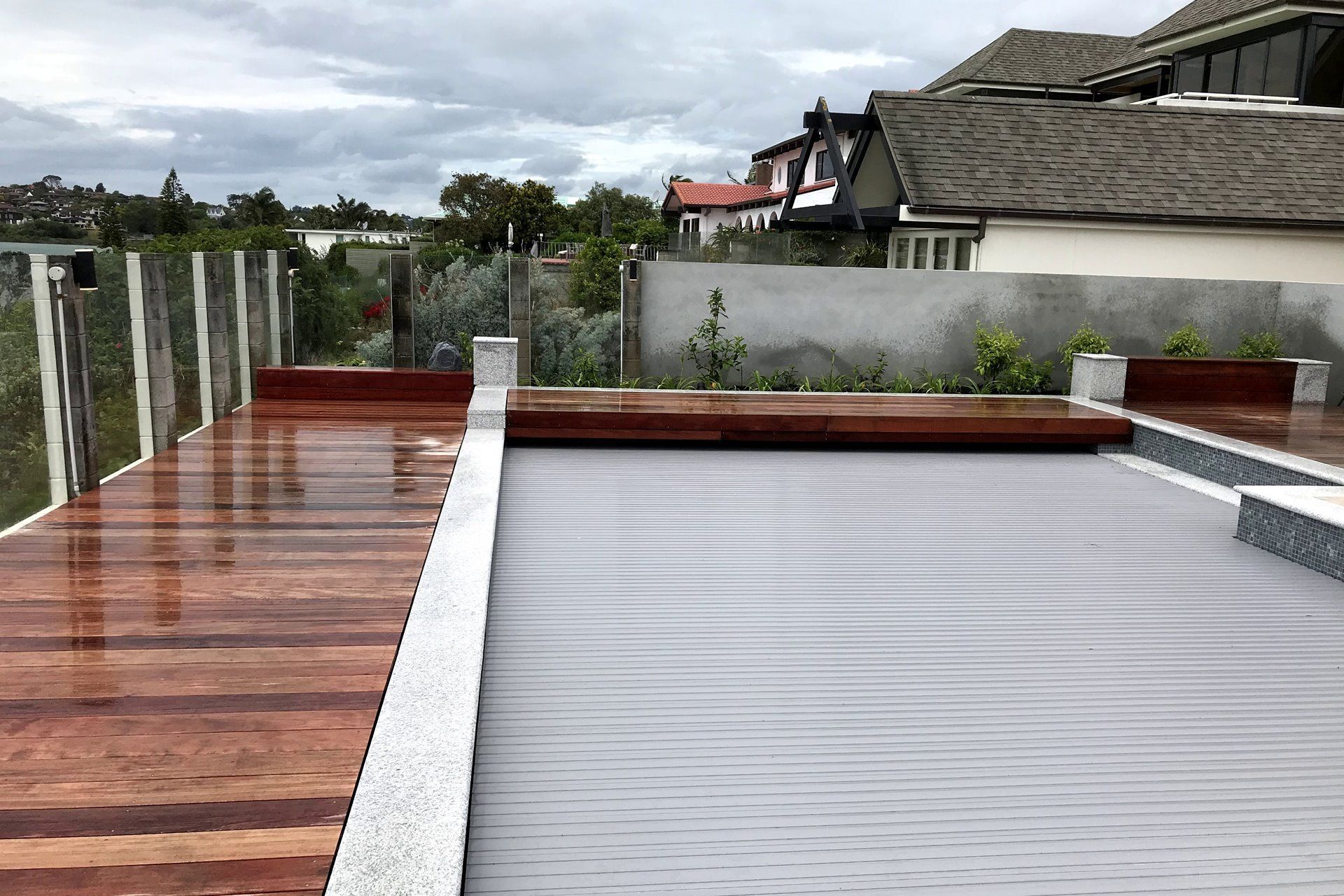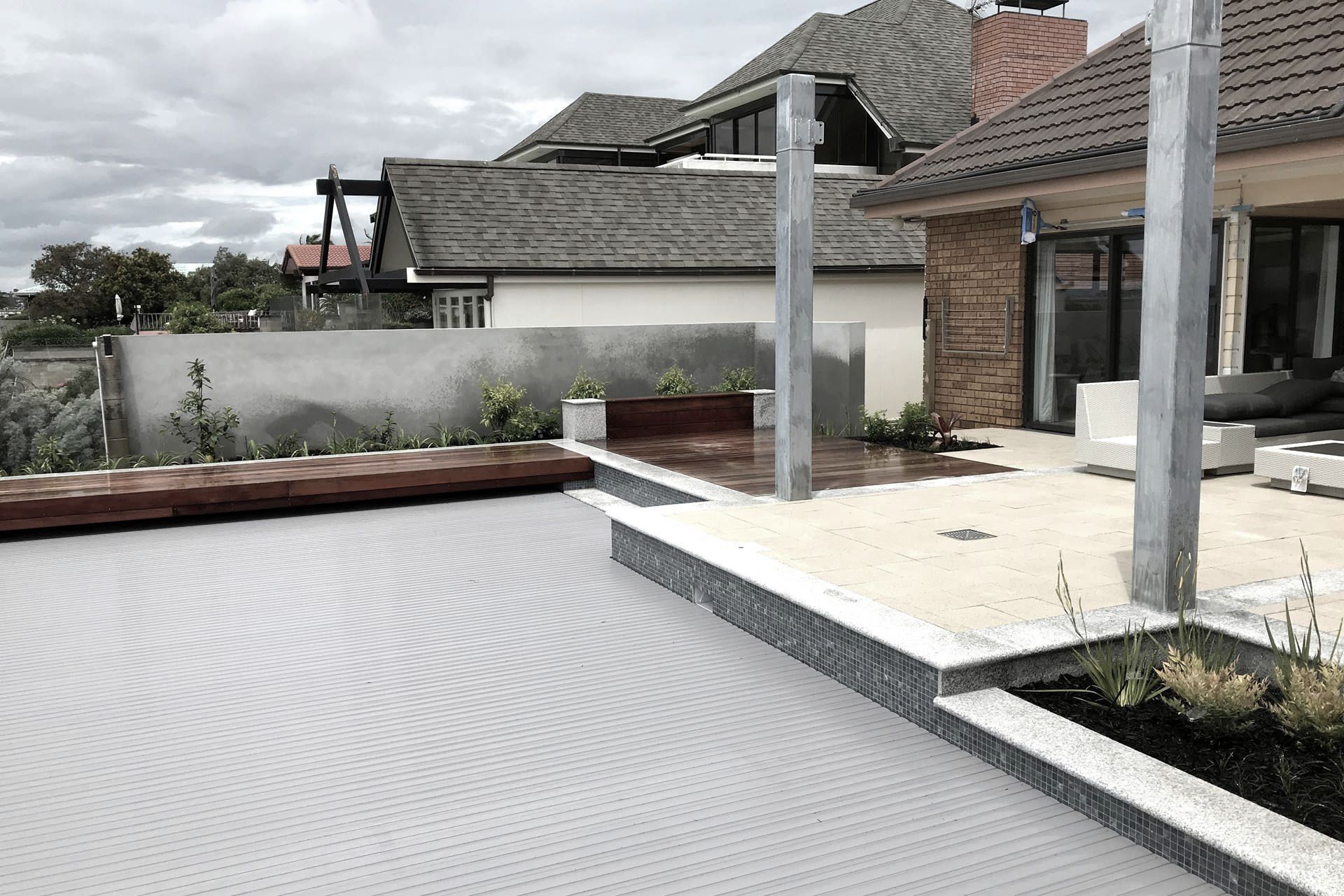 ArchiPro Project Summary - Comprehensive renovation featuring the removal of an old pool, installation of new decking, planting, block walls, and an automatic pool cover.